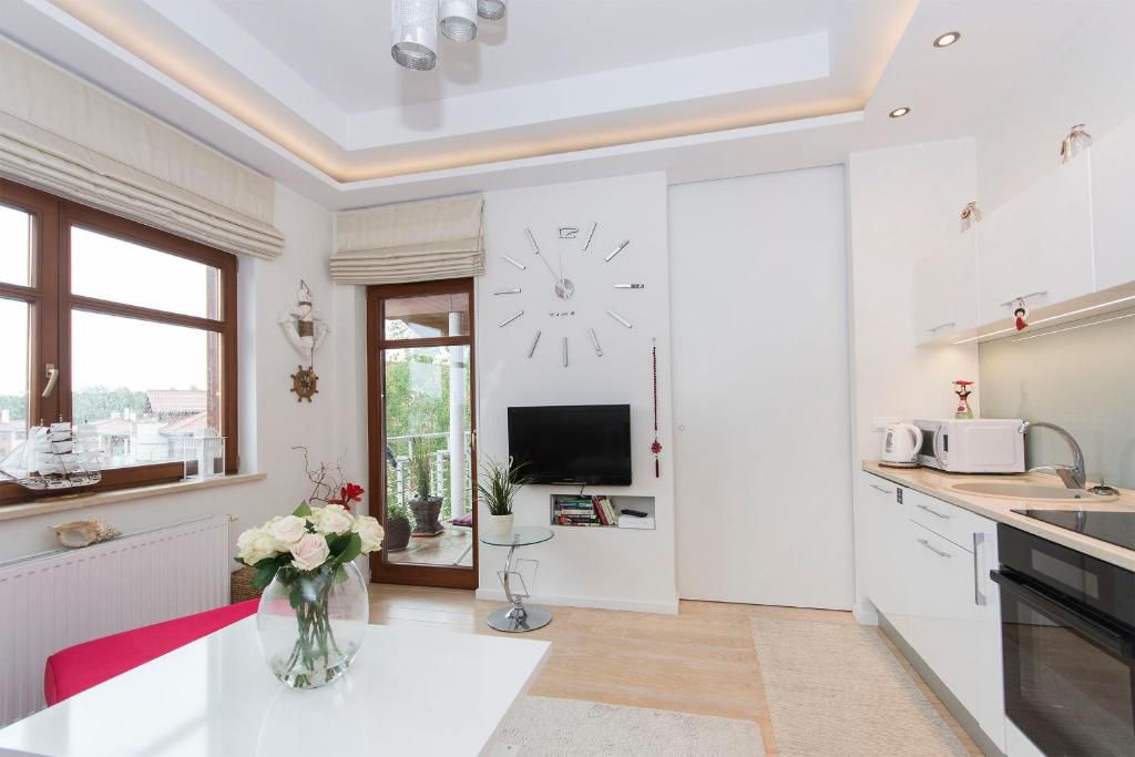 Lokalizacja apartamentu sprawia, że wystarczy zrobić klika kroków by znaleźć się nad samym brzegiem morza. Oprócz bliskości natury, miejsce to zapewnia rozbudowaną komunikację miejską, która umożliwia wygodne przemieszczanie się do centrum Gdańska i pozostałych dzielnic miasta. Apartament oddalony jest od serca Sopotu o 4,5 km. Odległość portu lotniczego im. Lech Wałęsa to 10 km. Dworzec PKP- Gdańsk Oliwa 3 km.
