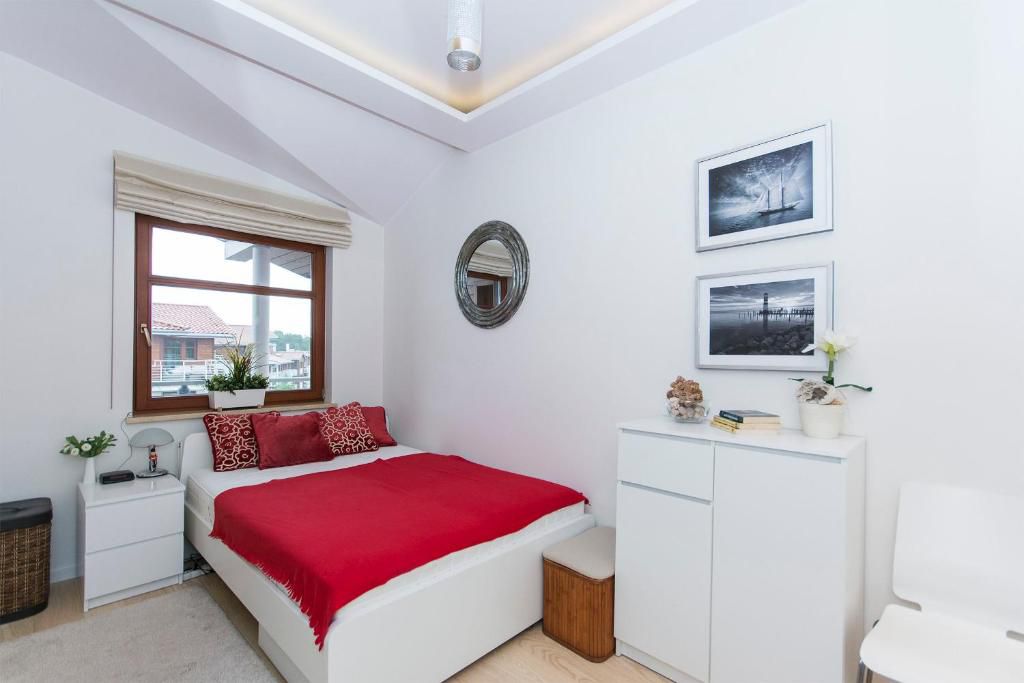 Apartament 4-osobowy o powierzchni 33 m², znajdujący się na 4. piętrze budynku z windą. Składa się z przestronnego salonu z dobrze wyposażonym aneksem kuchennym, który pozwala na komfortowe przygotowanie posiłków, sypialni wyposażonej w łóżko małżeńskie oraz łazienki z prysznicem. W salonie znajduje się rozkładana kanapa, która zapewnia dodatkowe miejsca do spania. Apartament jest idealnym rozwiązaniem dla pary lub małej rodziny. W obiekcie zezwala się na pobyt ze zwierzętami za dodatkową opłatą. Zaparkować można na miejscach parkingowych wyznaczonych na osiedlu, w zależności od dostępności.