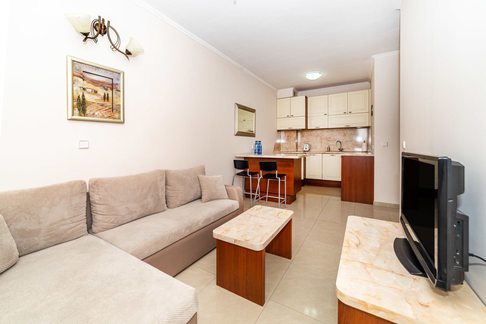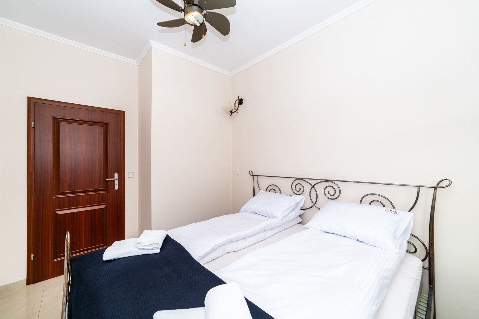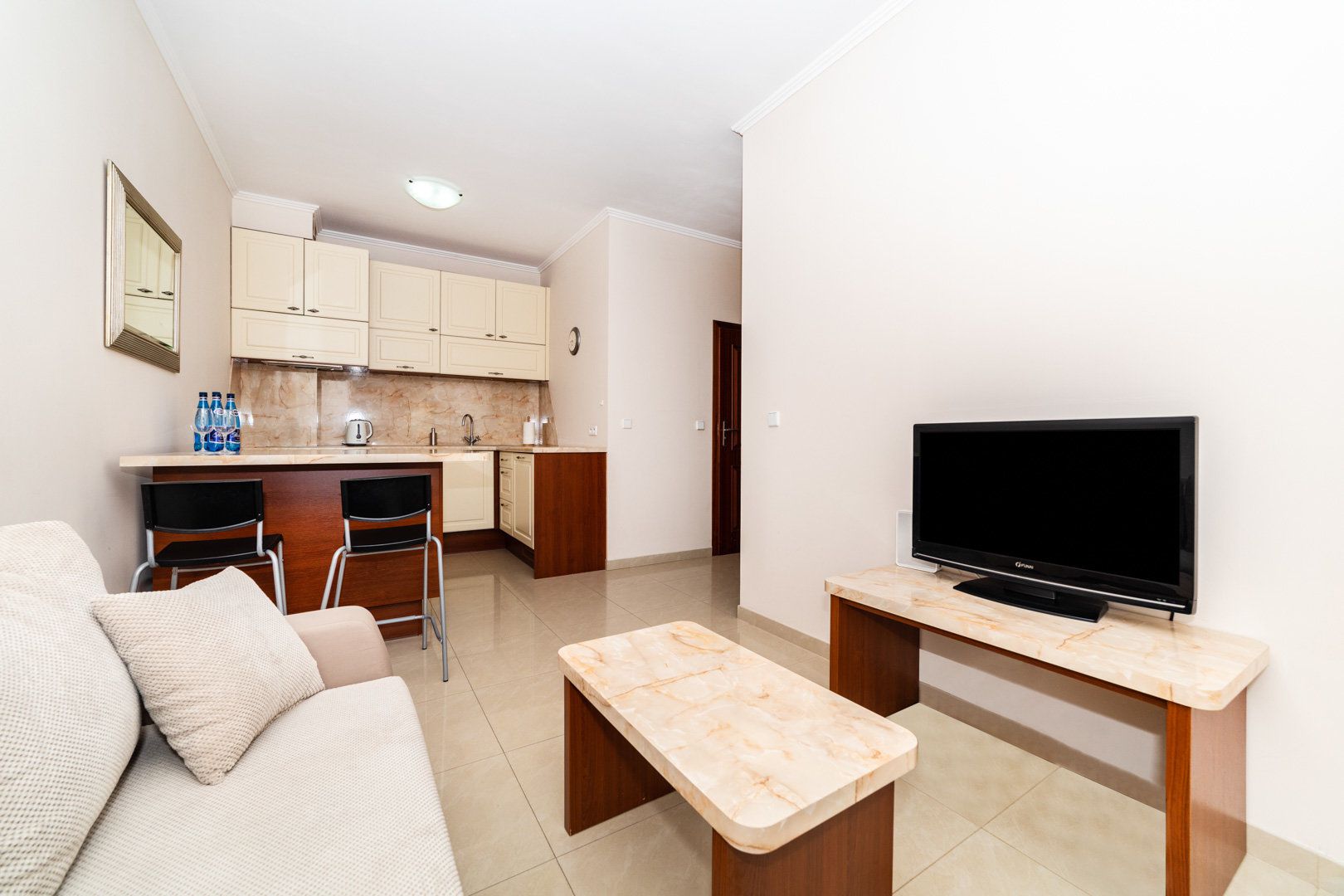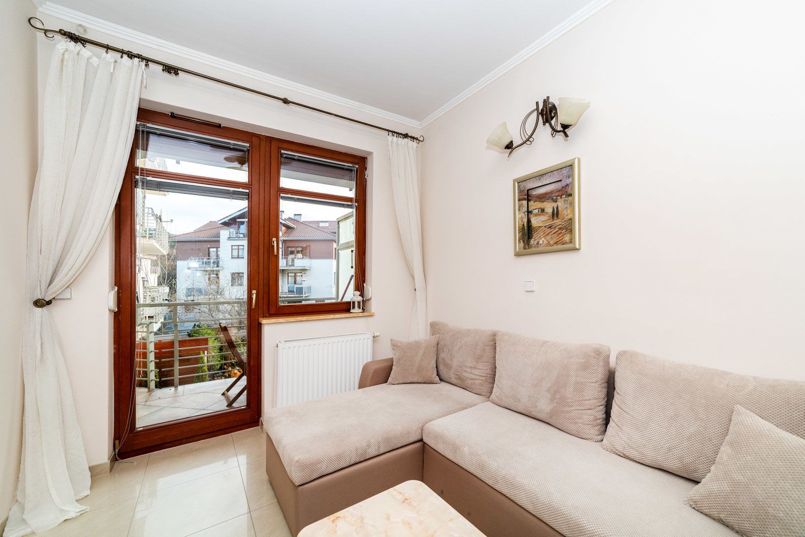 Apartament znajduje się na drugim piętrze i oferuje komfortowy nocleg dla 4 osób. Składa się z jednej przytulnej sypialni, łazienki oraz przestronnego salonu połączonego z aneksem kuchennym, z którego można wyjść na balkon. W salonie znajduje się rozkładana sofa, zapewniająca dodatkowe miejsca do spania.