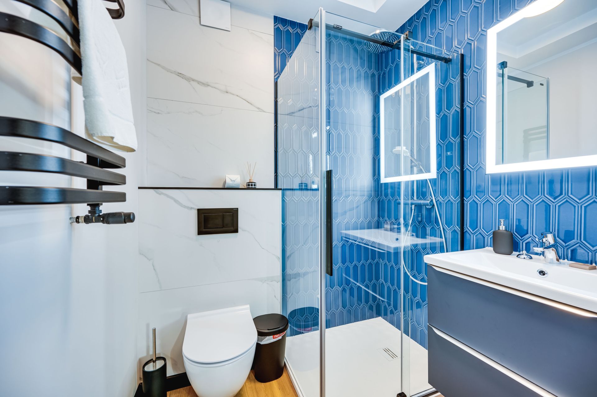 🔑 Zameldowanie samodzielne. Odbiór kluczy odbywa się pod innym adresem — spod biura, naprzeciwko budynku, w którym znajduje się apartament.