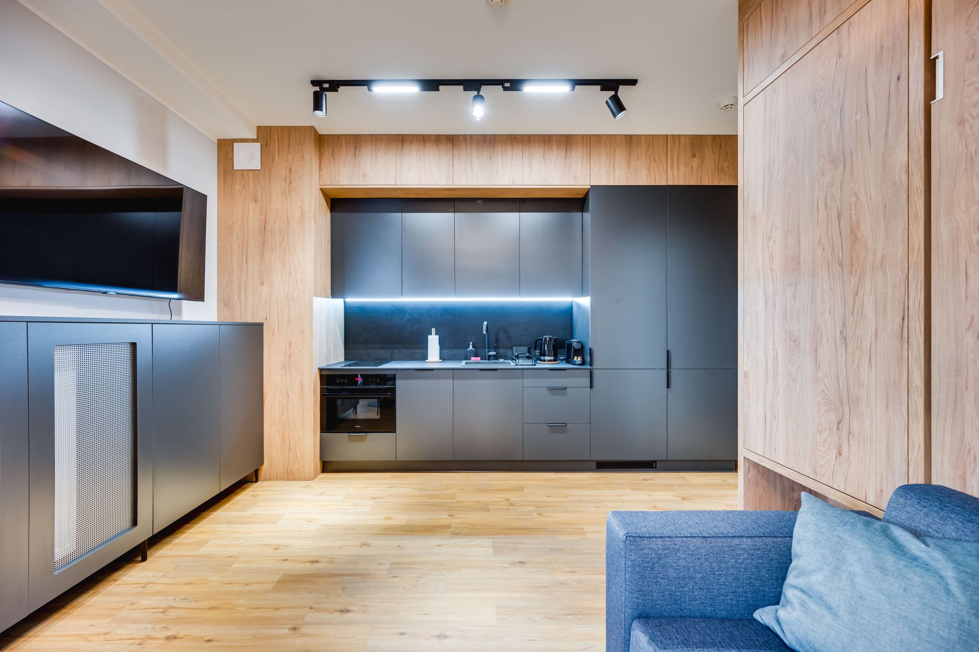🛏️ Układ pomieszczeń: studio z aneksem kuchennym oraz łazienką