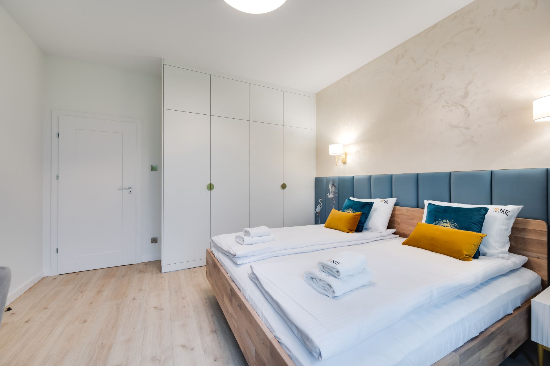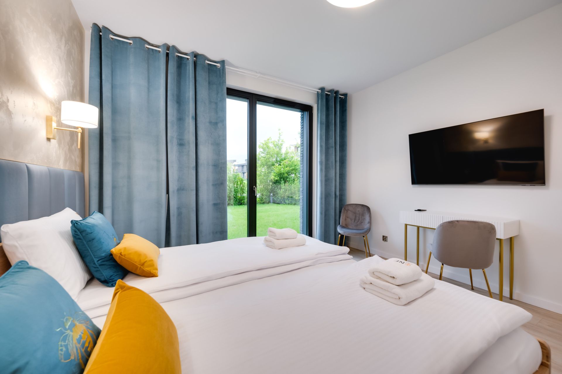 Blue Lagoon to wyjątkowy apartament, idealny dla rodzin szukających komfortowego wypoczynku. Usytuowany na parterze, oferuje przestronny salon z aneksem kuchennym, sypialnię z łóżkiem małżeńskim oraz łazienkę. Zarówno z salonu, jak i sypialni, można wyjść na prywatny taras, który zapewnia możliwość relaksu na świeżym powietrzu w otoczeniu zieleni. Apartament dysponuje przypisanym miejscem parkingowym w hali garażowej. W obiekcie obowiązuje całkowity zakaz przebywania ze zwierzętami, zapewniając komfort i bezpieczeństwo wszystkim gościom.