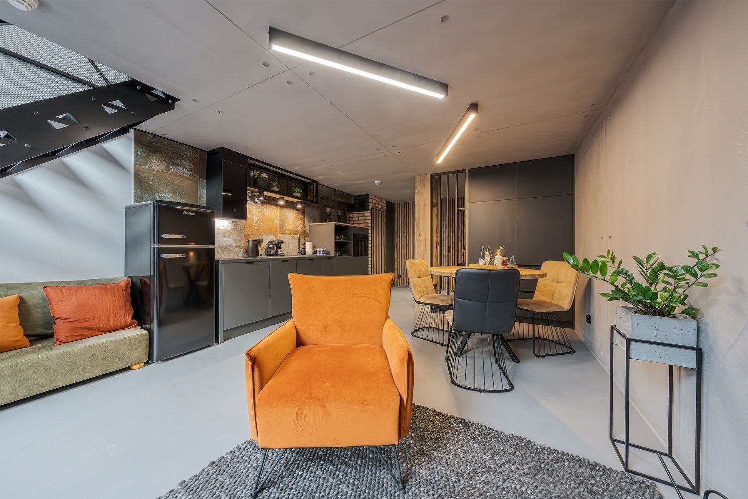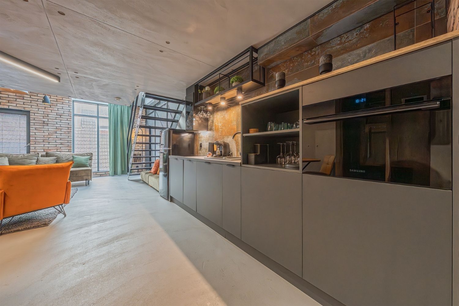 Apartament znajduje się w prestiżowym budynku tuż przy słynnym sopockim deptaku „Monciaku”, zaledwie kilka minut spacerem od plaży i molo. Wnętrze zachwyca nowoczesnym, loftowym stylem z wysokim sufitem i designerskimi dodatkami, które tworzą niepowtarzalny klimat.