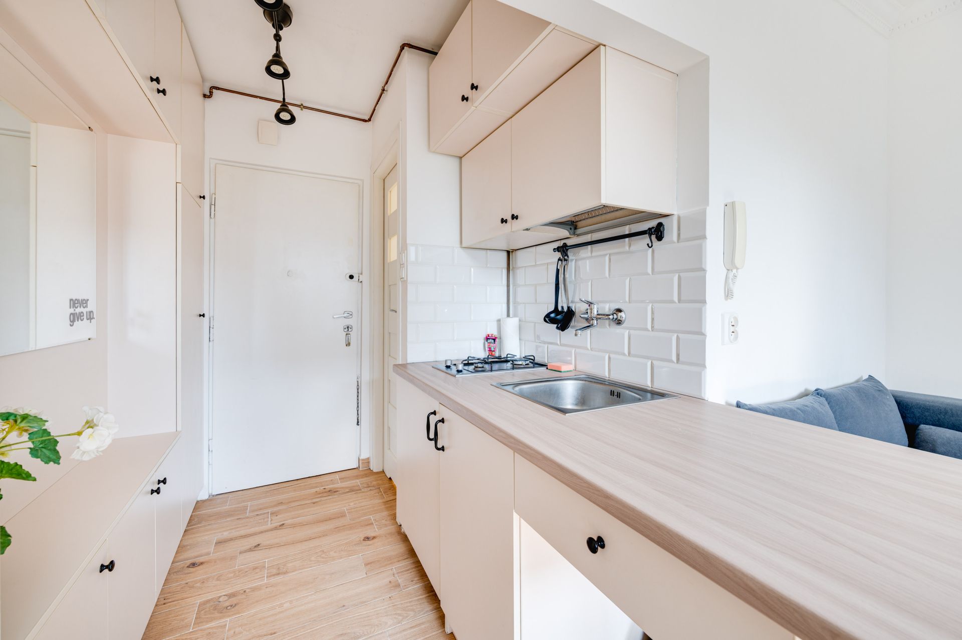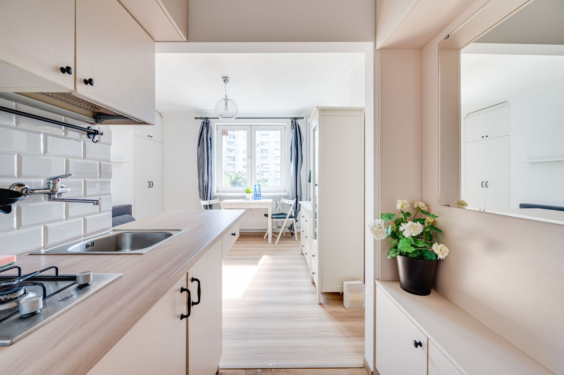 Daisy to kameralny dwuosobowy apartament przy ulicy 23 marca 91/32. Przytulny, urządzony w nowoczesnym stylu lokal, jest idealny do wypoczynku. Umieszczony na trzecim piętrze apartament składa się z salonu z rozkładaną sofą, aneksem kuchennym oraz prywatnej łazienki z prysznicem.