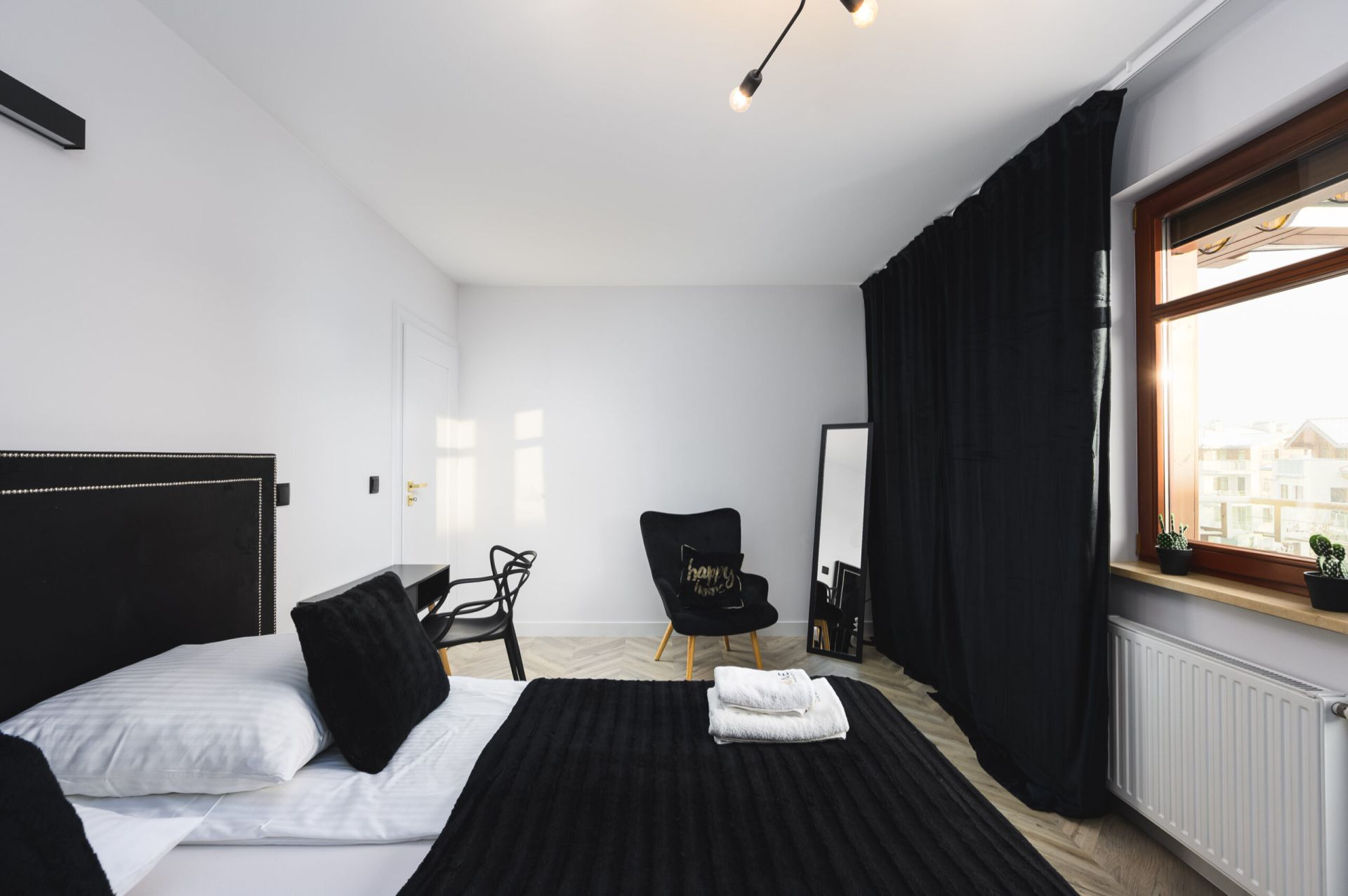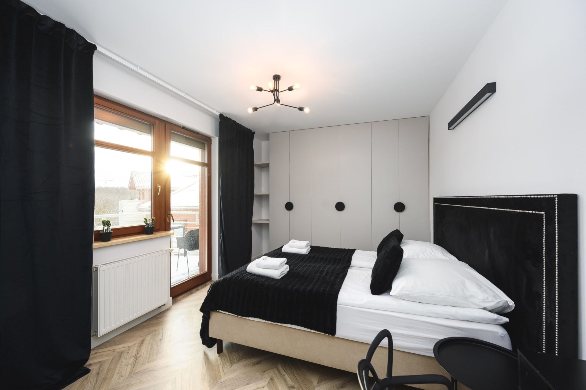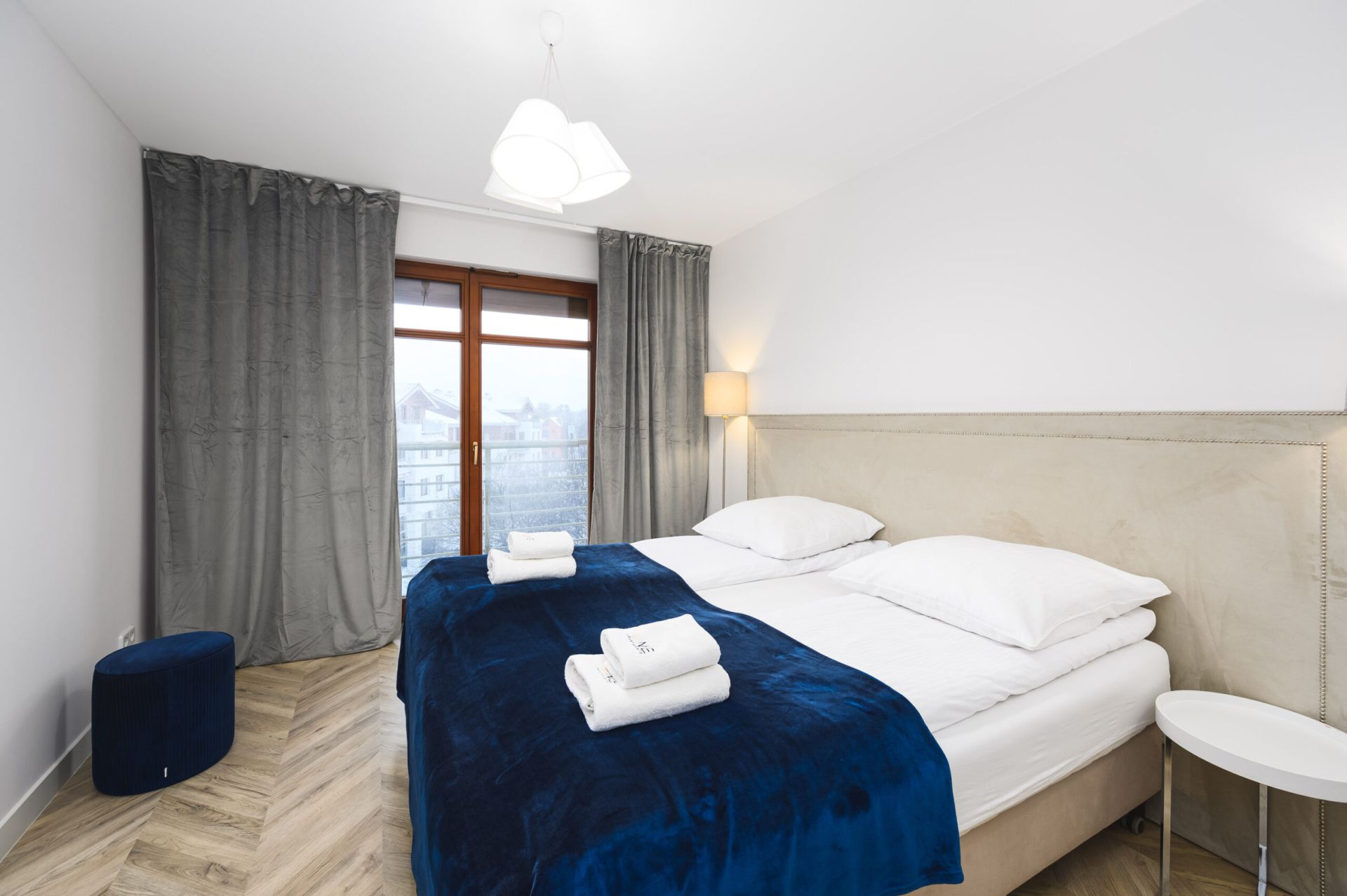 Apartament znajduje się na czwartym piętrze i oferuje komfortowy pobyt dla większej grupy osób. Składa się z dwóch sypialni, dwóch łazienek oraz przestronnego salonu połączonego z aneksem kuchennym, z którego można wyjść na balkon. Apartament zachwyca nowoczesnym designem i wysokim standardem wykończenia. Dodatkowo, do lokalu przynależy miejsce parkingowe w hali garażowej, co zapewnia wygodę i bezpieczeństwo.