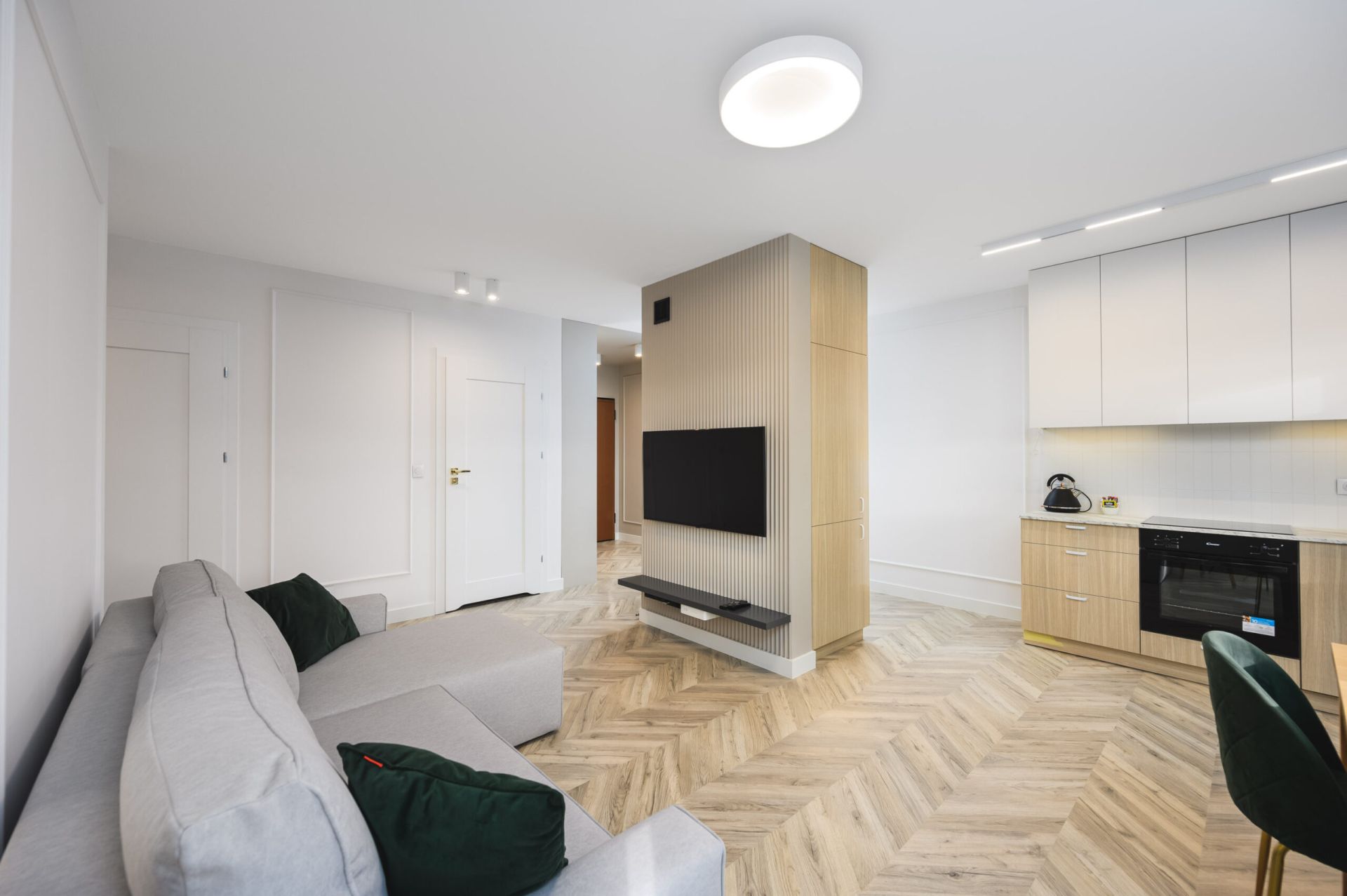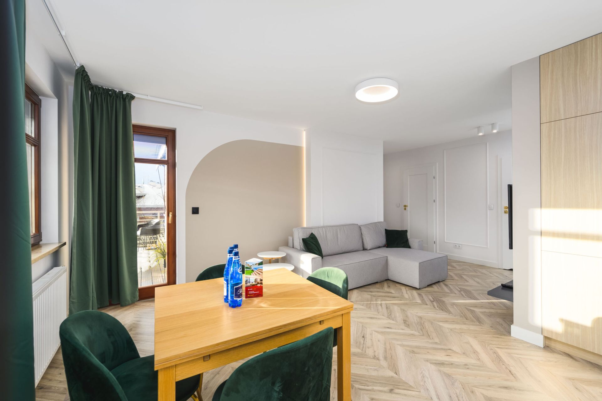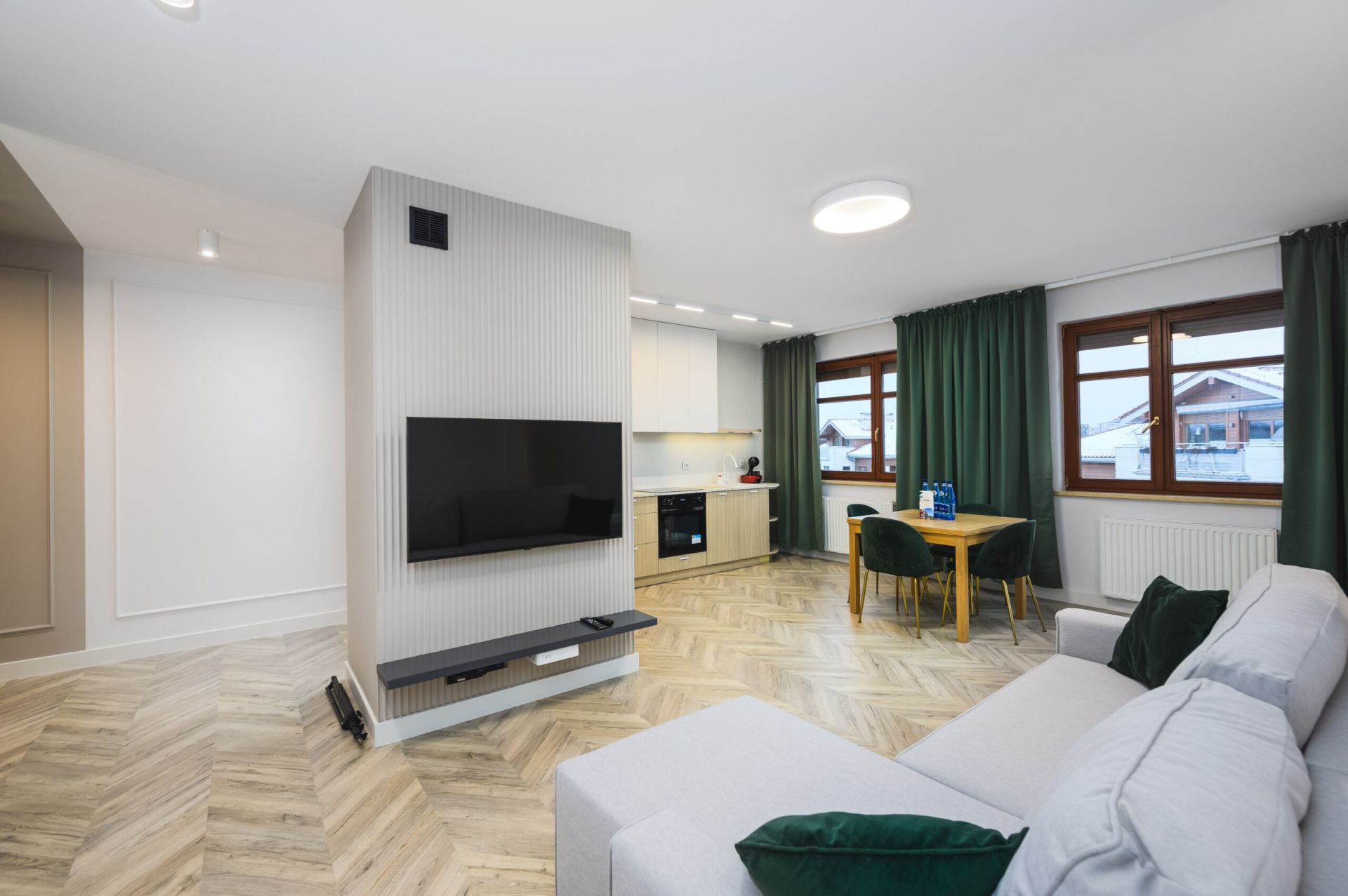 Apartament znajduje się na czwartym piętrze i oferuje komfortowy pobyt dla większej grupy osób. Składa się z dwóch sypialni, dwóch łazienek oraz przestronnego salonu połączonego z aneksem kuchennym, z którego można wyjść na balkon. Apartament zachwyca nowoczesnym designem i wysokim standardem wykończenia. Dodatkowo, do lokalu przynależy miejsce parkingowe w hali garażowej, co zapewnia wygodę i bezpieczeństwo.