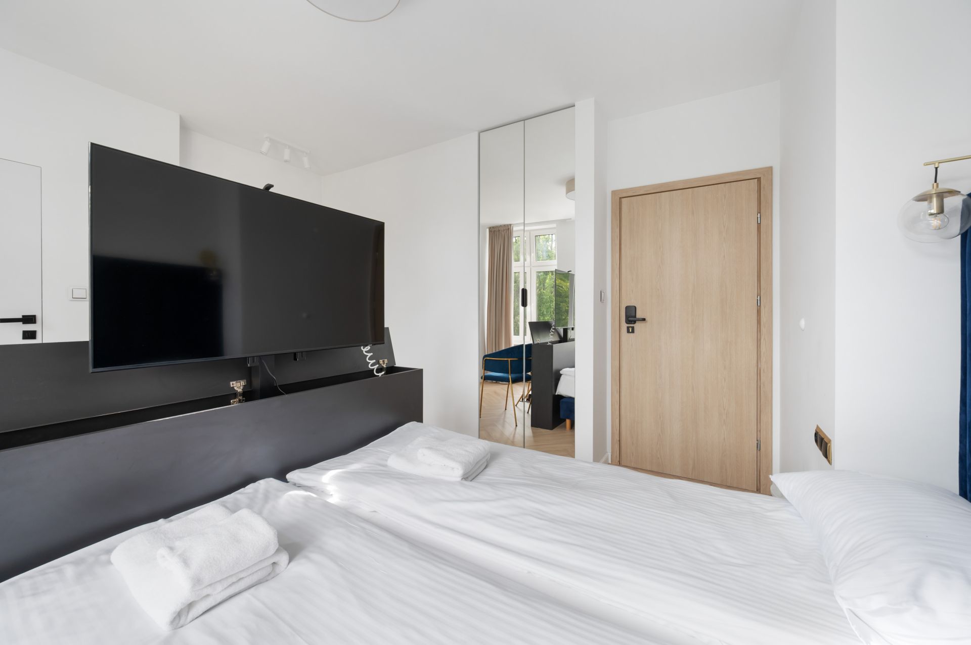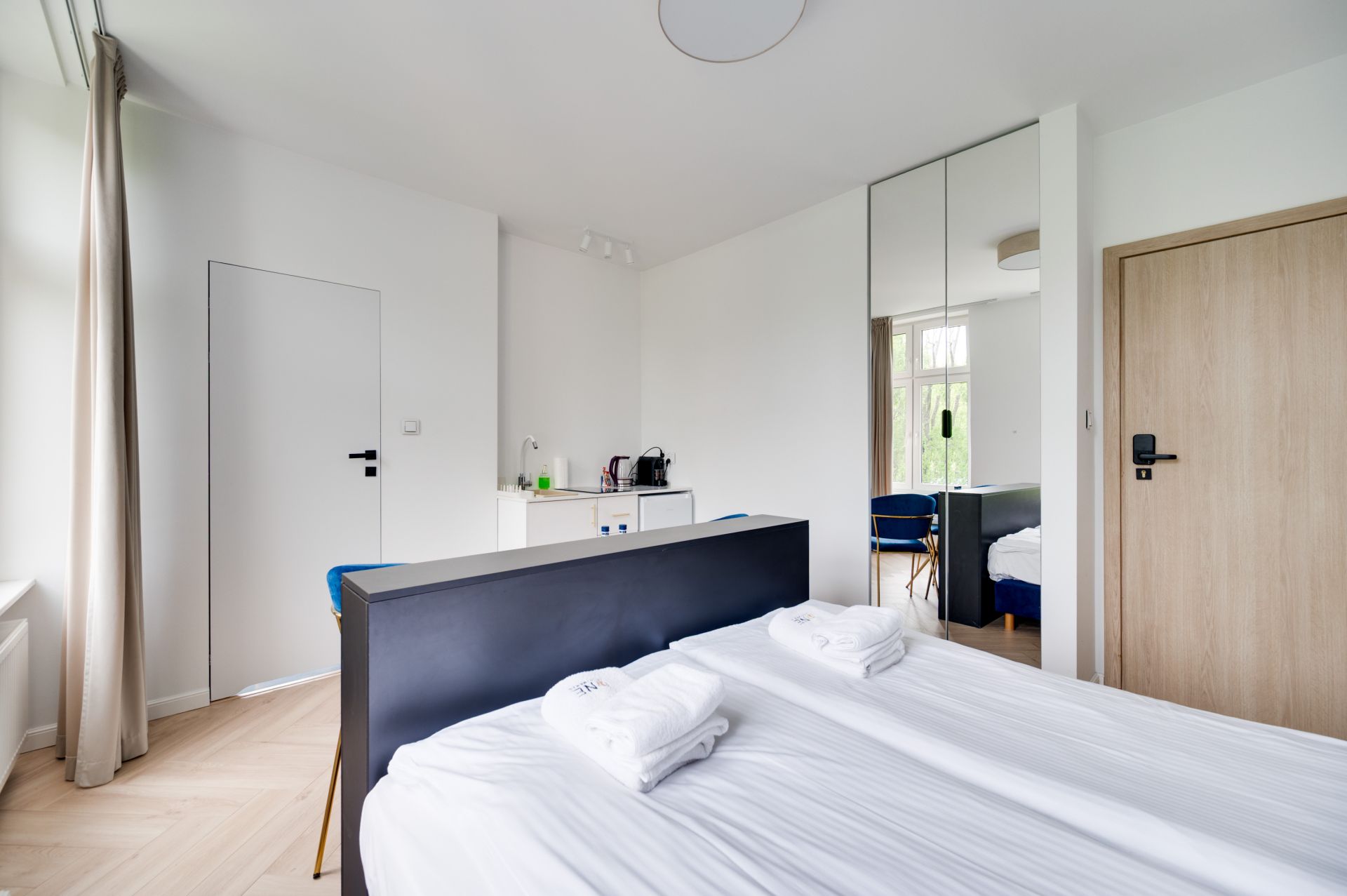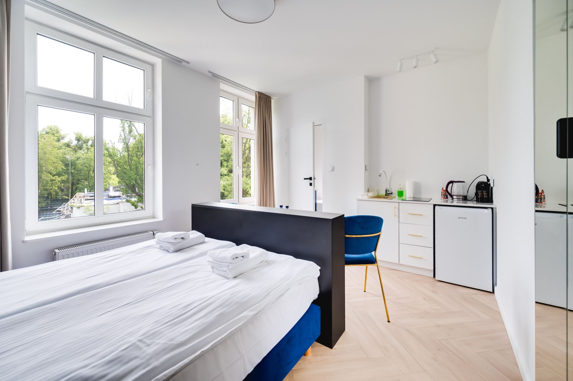 Kameralny i jasny apartament w sercu Sopotu, usytuowany w stylowej kamienicy, to doskonałe miejsce na wypoczynek lub pracę w spokojnej, nadmorskiej atmosferze. Składa się z przytulnej sypialni połączonej z niewielkim, ale funkcjonalnym aneksem kuchennym wyposażonym w podstawowe udogodnienia, oraz łazienki z wanną i funkcją prysznica. W apartamencie znajduje się także nowoczesny telewizor dyskretnie chowany w komodzie przy łóżku, co pozwala na zachowanie estetyki wnętrza i jednocześnie komfortowe korzystanie z multimediów. Starannie zaprojektowane wnętrze z dbałością o detale sprzyja relaksowi, wyciszeniu oraz pracy zdalnej. Zaledwie kilka kroków dzieli apartament od zielonych terenów rekreacyjnych i parku, a w krótkim spacerze można dotrzeć na plażę oraz tętniący życiem deptak Monte Cassino. Idealna lokalizacja zapewnia szybki dostęp do atrakcji Sopotu, a jednocześnie pozwala cieszyć się ciszą i spokojem charakterystycznym dla bocznych uliczek.