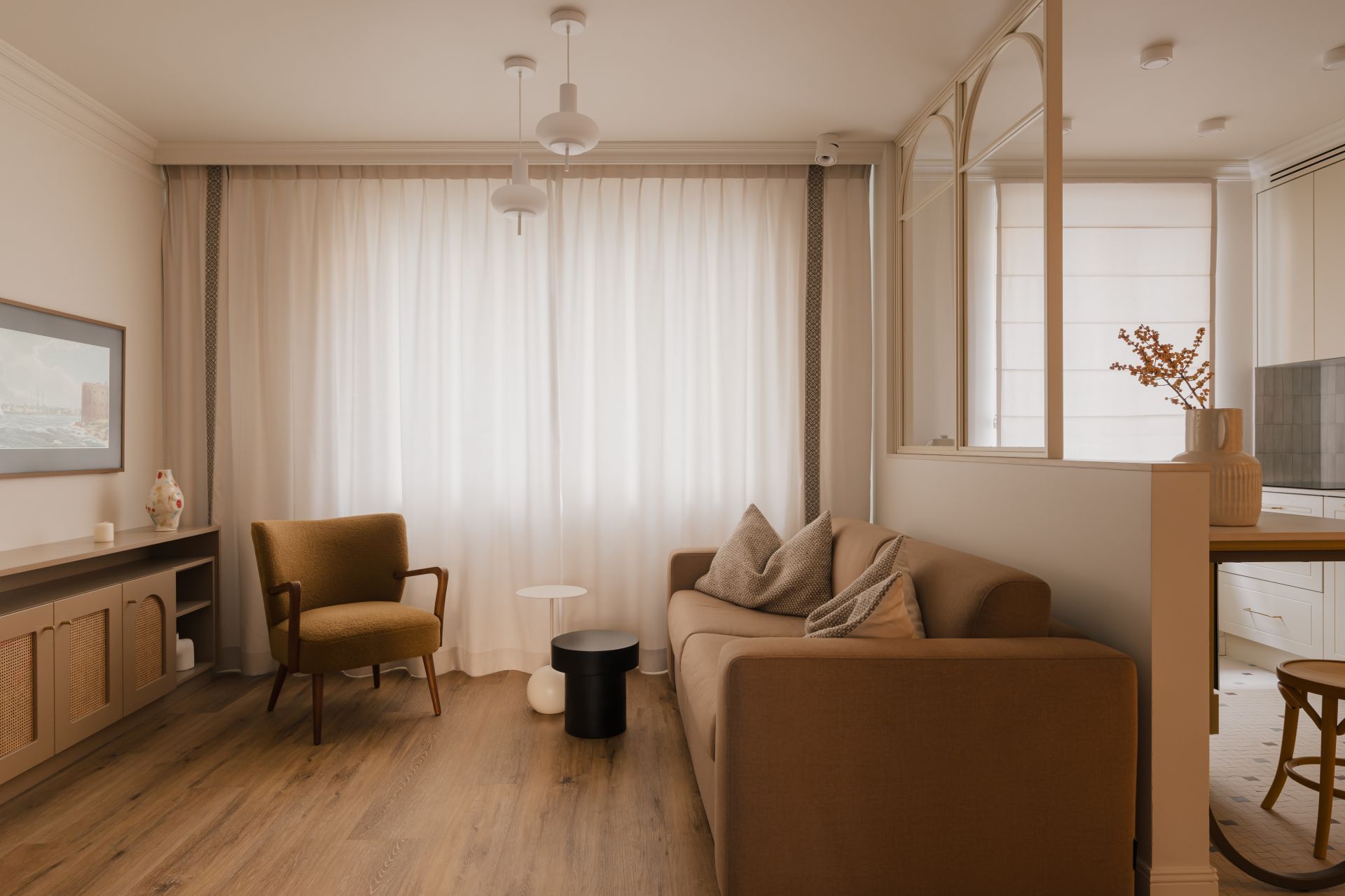 Latte to nasz świeżo wyremontowany apartament znajdujący się w przedwojennej sopockiej kamienicy. Apartament o powierzchni 61 m2 przystosowany jest dla sześciu osób. W całym mieszkaniu dominują ciepłe kolory, które sprawiają poczucie bliskości z naturą oraz historią tego miejsca. Lokal składa się z dwóch sypialni, a w każdej z nich znajduje się wygodne łóżko małżeńskie oraz miejsce do przechowywania. W jednej z sypialni oraz w salonie znajdują się telewizory. Salon z aneksem kuchennym przeznaczony jest do wspólnych posiłków, przygotowanych w kuchni tworzącej spójną całość z wnętrzem apartamentu. Salon posiada rozkładaną sofę. W przytulnym salonie znajduje się kominek, który umili nam każdy wieczór.
