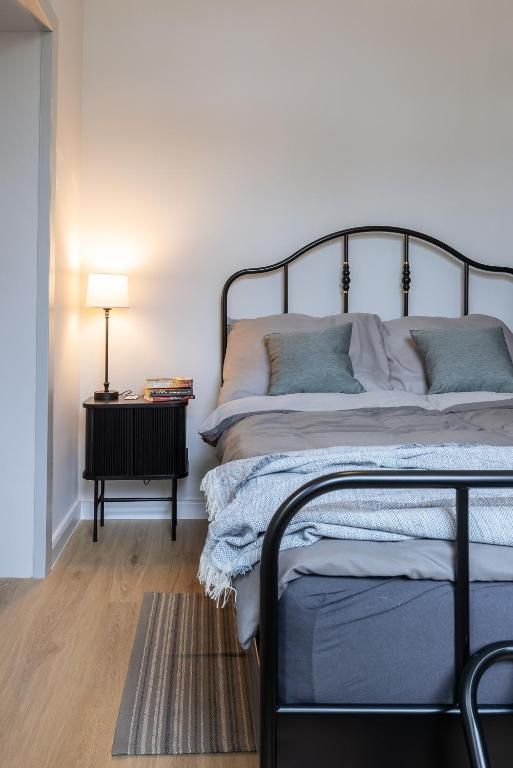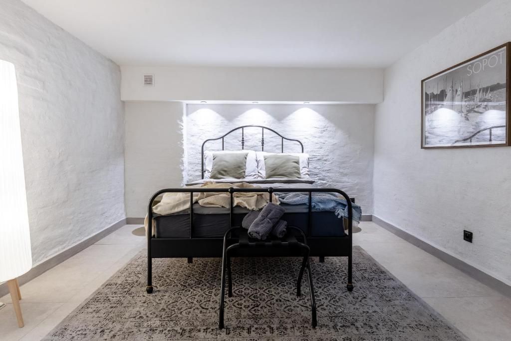 Sypialnia zapewnia wygodne łóżko, wysokiej jakości pościel oraz miejsce do przechowywania ubrań. Nowoczesna łazienka wyposażona jest w przestronną umywalkę, podświetlane lustro oraz niezbędne udogodnienia, gwarantując komfortowy pobyt.