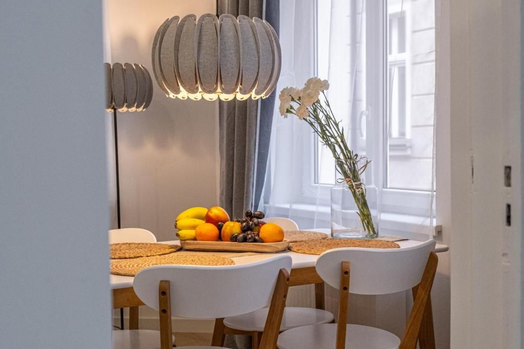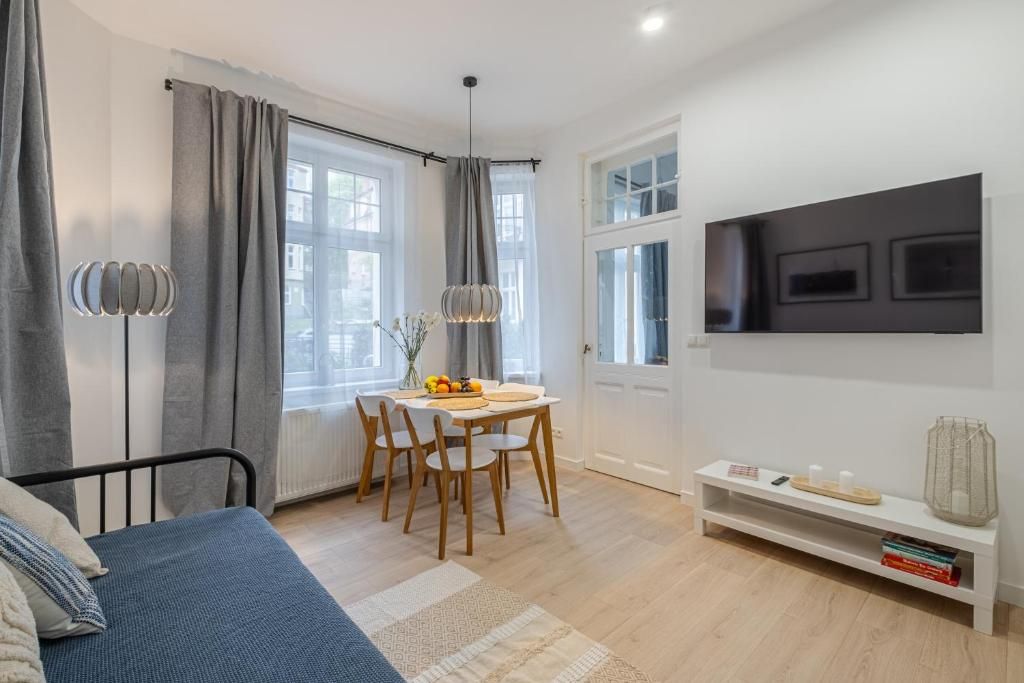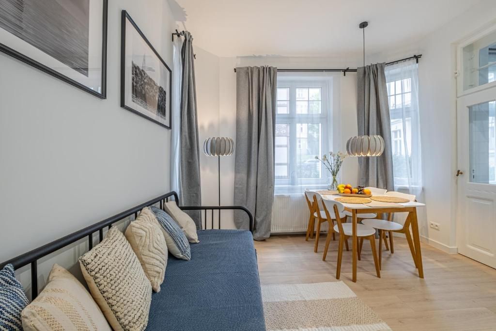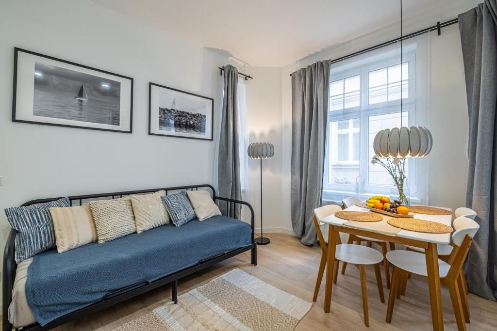 Apartament został urządzony w jasnym, skandynawskim stylu, z dbałością o detale i wygodę gości. Wysokie okna zapewniają doskonałe doświetlenie wnętrz, a nowoczesne wyposażenie gwarantuje komfortowy pobyt zarówno na weekend, jak i dłuższy urlop.