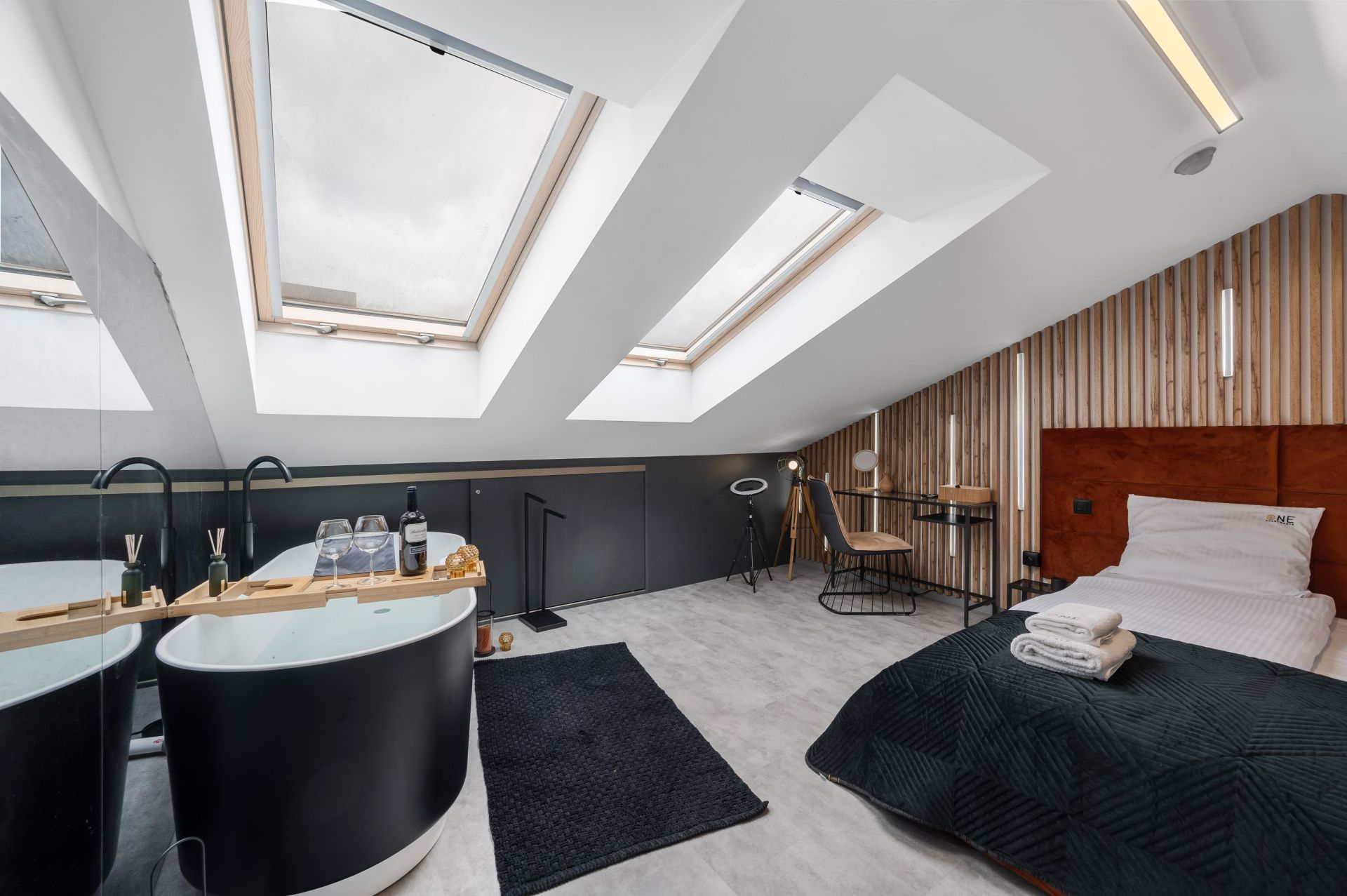 Ekskluzywny apartament przy ul. Bohaterów Monte Cassino 27 w Sopocie to wyjątkowa propozycja na wynajem krótkoterminowy dla osób ceniących luksus, design i doskonałą lokalizację w samym sercu nadmorskiego kurortu. Położony w prestiżowym budynku tuż przy słynnym deptaku, apartament zachwyca nowoczesnym loftowym stylem, wysokim sufitem i klimatycznymi dodatkami, które tworzą niepowtarzalną atmosferę. W skład apartamentu wchodzi przestronny salon z aneksem kuchennym, łazienka z prysznicem i prywatną sauną, a schody prowadzą do otwartej sypialni znajdującej się na antresoli. Dodatkowym atutem jest wanna z oświetleniem LED, idealna do romantycznych kąpieli, oraz okna poddaszowe, które wypełniają wnętrze naturalnym światłem. Apartament może pomieścić maksymalnie 4 osoby, co czyni go idealnym wyborem zarówno dla par, jak i niewielkich grup przyjaciół.
