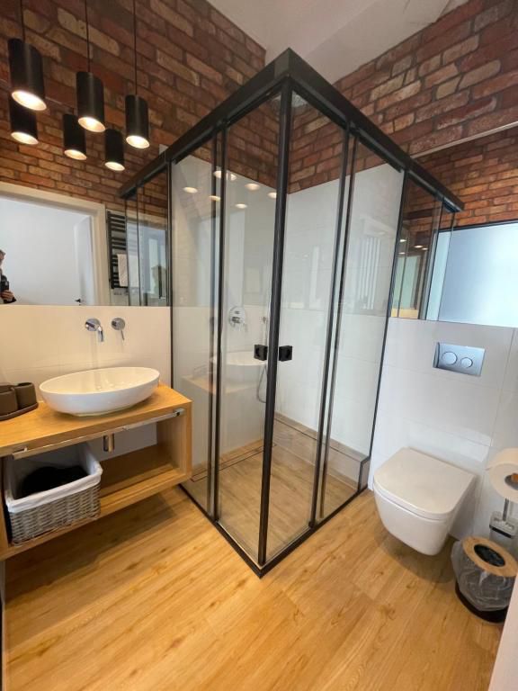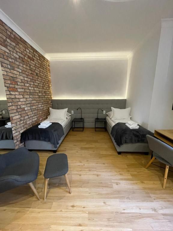 Przestronny, 4-osobowy apartament o powierzchni 50 m² to doskonały wybór dla rodzin lub grupy przyjaciół poszukujących komfortu i stylu w samym sercu Sopotu. Składa się z dwóch sypialni – jednej z łóżkiem małżeńskim oraz drugiej z dwoma łóżkami pojedynczymi – a także dwóch nowoczesnych łazienek i w pełni wyposażonego aneksu kuchennego z jadalnią. Połączenie klasycznej cegły z modernistycznym wystrojem wnętrz nadaje apartamentowi wyjątkowy charakter i przytulną atmosferę. Komfortowe łazienki z prysznicem zapewniają idealne warunki do relaksu po aktywnie spędzonym dniu. Apartament mieści się w klimatycznej kamienicy, przy cichej uliczce tuż obok słynnego deptaka Monte Cassino – zaledwie kilka kroków dzieli go od centrum wydarzeń.