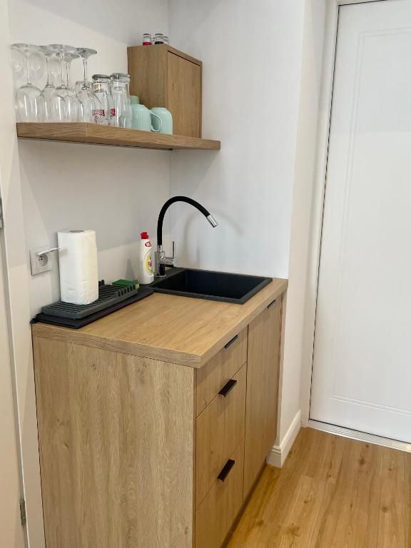 Nowoczesny apartament typu studio dla 2 osób to idealne miejsce na romantyczny wypad lub spokojny wypoczynek nad morzem. Połączenie modernistycznego wystroju z klasyczną cegłą w łazience tworzy przytulną i stylową przestrzeń do relaksu. W apartamencie znajduje się wygodne łóżko małżeńskie, kompaktowy aneks kuchenny idealny do przygotowania śniadania lub kolacji, telewizor, miejsce do przechowywania rzeczy oraz balkon, na którym można wypić poranną kawę. Lokal mieści się w urokliwej kamienicy, tuż przy bocznej uliczce od słynnego sopockiego deptaka Monte Cassino – zaledwie kilka kroków dzieli Cię od tętniącego życiem centrum.