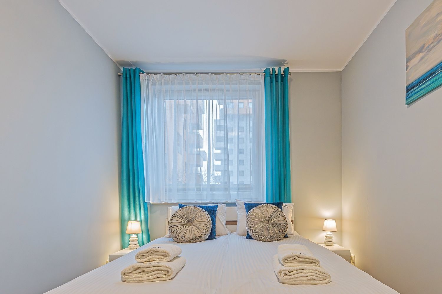 Apartament składa się z oddzielnej sypialni, salonu z częścią jadalnianą, aneksu kuchennego, łazienki z wanną oraz balkonu. Całość została urządzona w jasnym stylu, zapewniając komfort i funkcjonalność dla maksymalnie 5 osób.