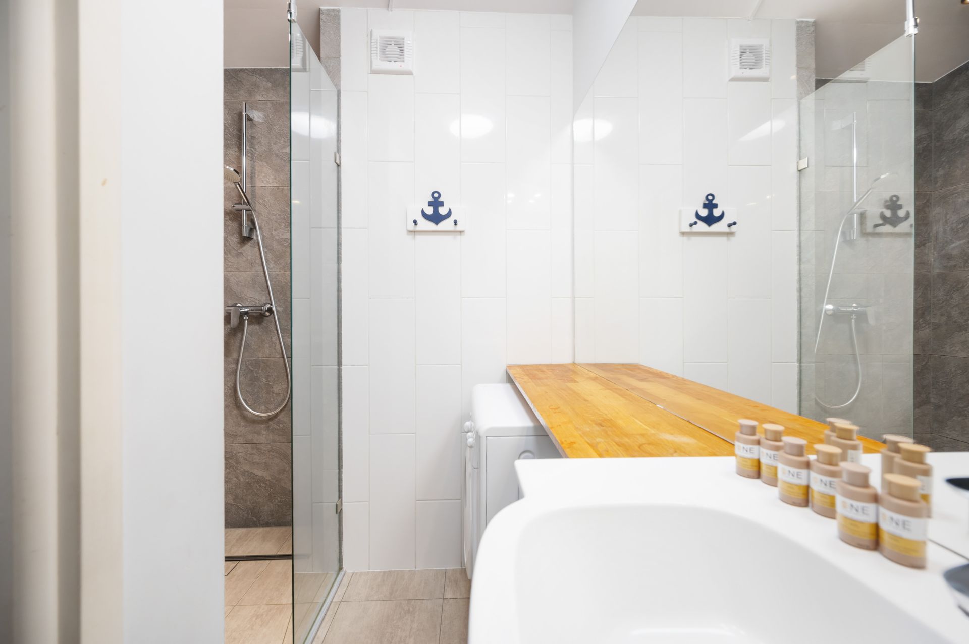 Old Town Sopot to apartament 4 osobowy o powierzchni 65m2. Składa się z salonu z aneksem kuchennym z częścią jadalnianą, dwóch sypialni oraz łazienki z prysznicem. W obu sypialniach znajdują się łóżka małżeńskie, a w salonie znajduję się rozkładana sofa. Lokal znajduję się na 3 piętrze w budynku z windą lecz z uwagi na budowę budynku trzeba podejść kilka schodków w górę. Do apartamentu przypisane jest miejsce parkingowe.