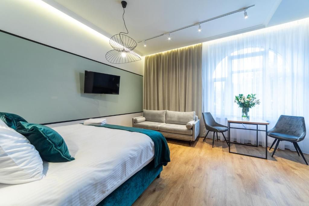 Apartament dla 2 osób utrzymany w odcieniach zieleni to doskonała propozycja dla miłośników natury i spokoju, pragnących wypocząć w sercu Sopotu. Zielona kolorystyka wnętrza wprowadza harmonię i świeżość, a komfortowe łóżko małżeńskie oraz łazienka z prysznicem zapewniają pełen relaks. Apartament oferuje również niewielki stolik na wspólne posiłki oraz dostęp do w pełni wyposażonej kuchni w części wspólnej, współdzielonej z trzema innymi pokojami. Idealna lokalizacja – tylko 150 metrów od piaszczystej plaży i 300 metrów od molo oraz deptaka Monte Cassino – sprawia, że to idealne miejsce na wakacyjny wypoczynek.