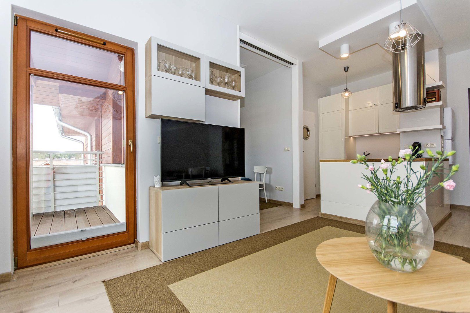 Sand to apartament 4 osobowy o powierzchni 33m2. Składa się z salonu z aneksem kuchennym, z którego można wyjść na balkon, sypialni z łóżkiem małżeńskim oraz łazienki z prysznicem. W salonie umieszczona jest rozkładana sofa. Apartament znajduje się na 4 piętrze w budynku z windą. W obiekcie mogą przebywać zwierzęta za dodatkową opłatą. Na osiedlu nie ma możliwości zaparkowania na wyznaczonych miejscach.