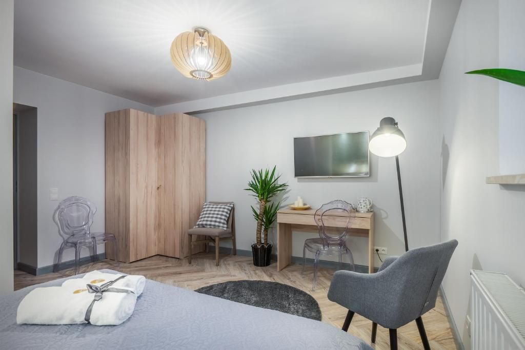 Bubble Room to elegancki i jasny pokój dwuosobowy typu Comfort o powierzchni 20 m², zaprojektowany z myślą o komforcie, spokoju i funkcjonalności. To idealny wybór dla par oraz gości podróżujących służbowo, którzy szukają stylowego noclegu z pełnym wyposażeniem. Pokój jest dźwiękoszczelny, zlokalizowany na parterze i posiada oddzielne, prywatne wejście.