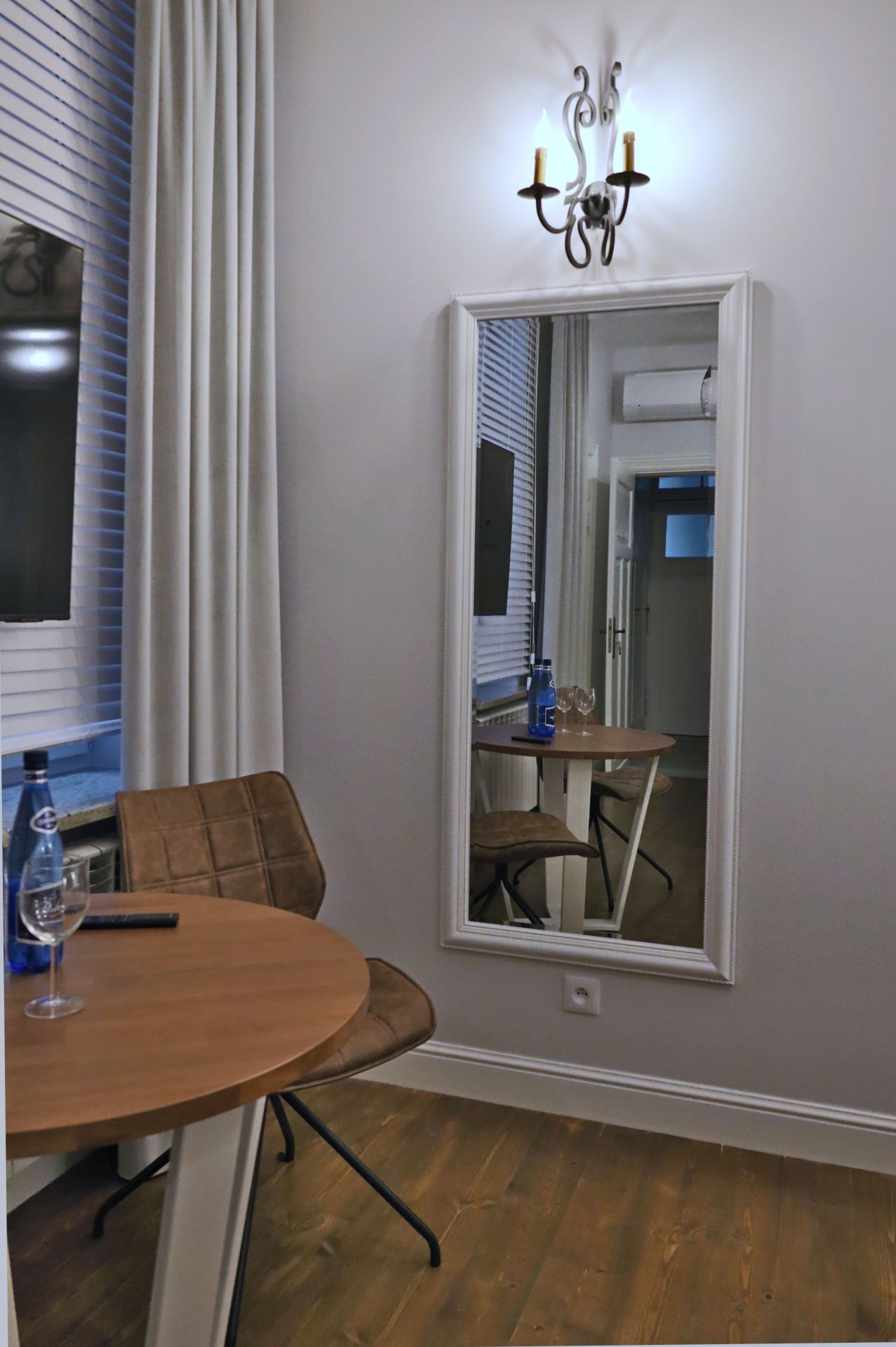 Nowoczesny i przytulny apartament dwuosobowy w samym sercu Sopotu, położony przy cichej bocznej uliczce tuż obok słynnego deptaka Monte Cassino. Apartament oferuje komfortowe łóżko małżeńskie, strefę dzienną z wygodnymi krzesłami i stołem, idealną do relaksu lub pracy. Do dyspozycji gości jest w pełni wyposażony aneks kuchenny, umożliwiający przygotowanie posiłków, oraz pralka w pomieszczeniu gospodarczym, gdzie można wejść z korytarza (dzielonego na trzy pozostałe pokoje). Okna apartamentu wychodzą na wewnętrzny dziedziniec, co zapewnia ciszę i spokój, a ograniczone światło dzienne sprzyja odpoczynkowi i wyciszeniu po dniu pełnym wrażeń. Jasne, stylowe wnętrze z dbałością o detale zapewnia wygodę i kameralną atmosferę zarówno na krótki pobyt, jak i dłuższy urlop nad morzem. Idealna lokalizacja pozwala na szybki dostęp do plaży, restauracji i atrakcji turystycznych Sopotu.