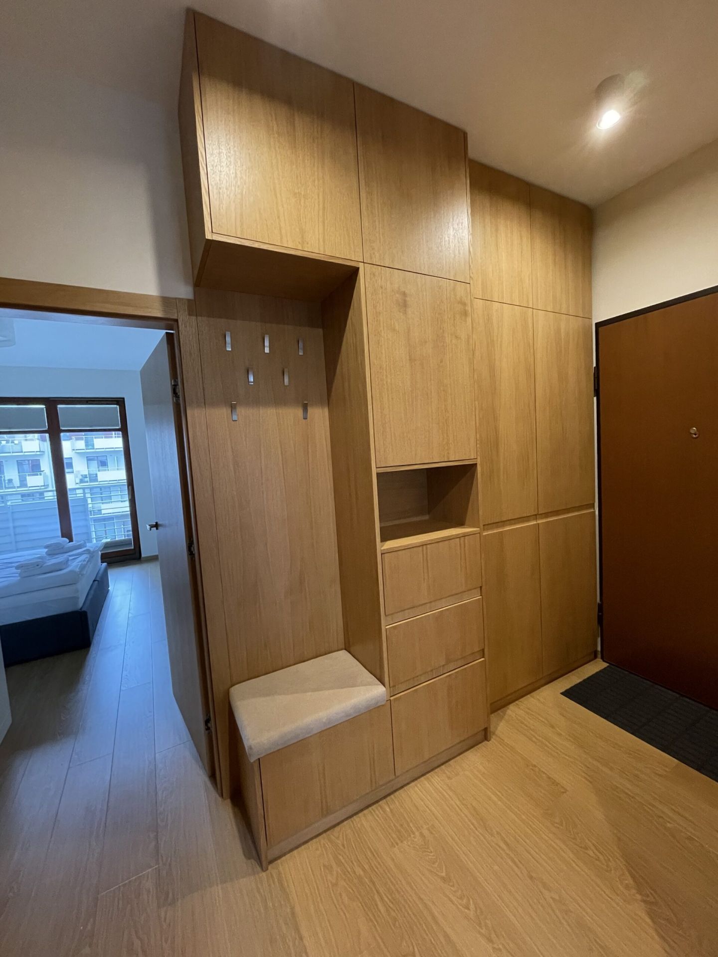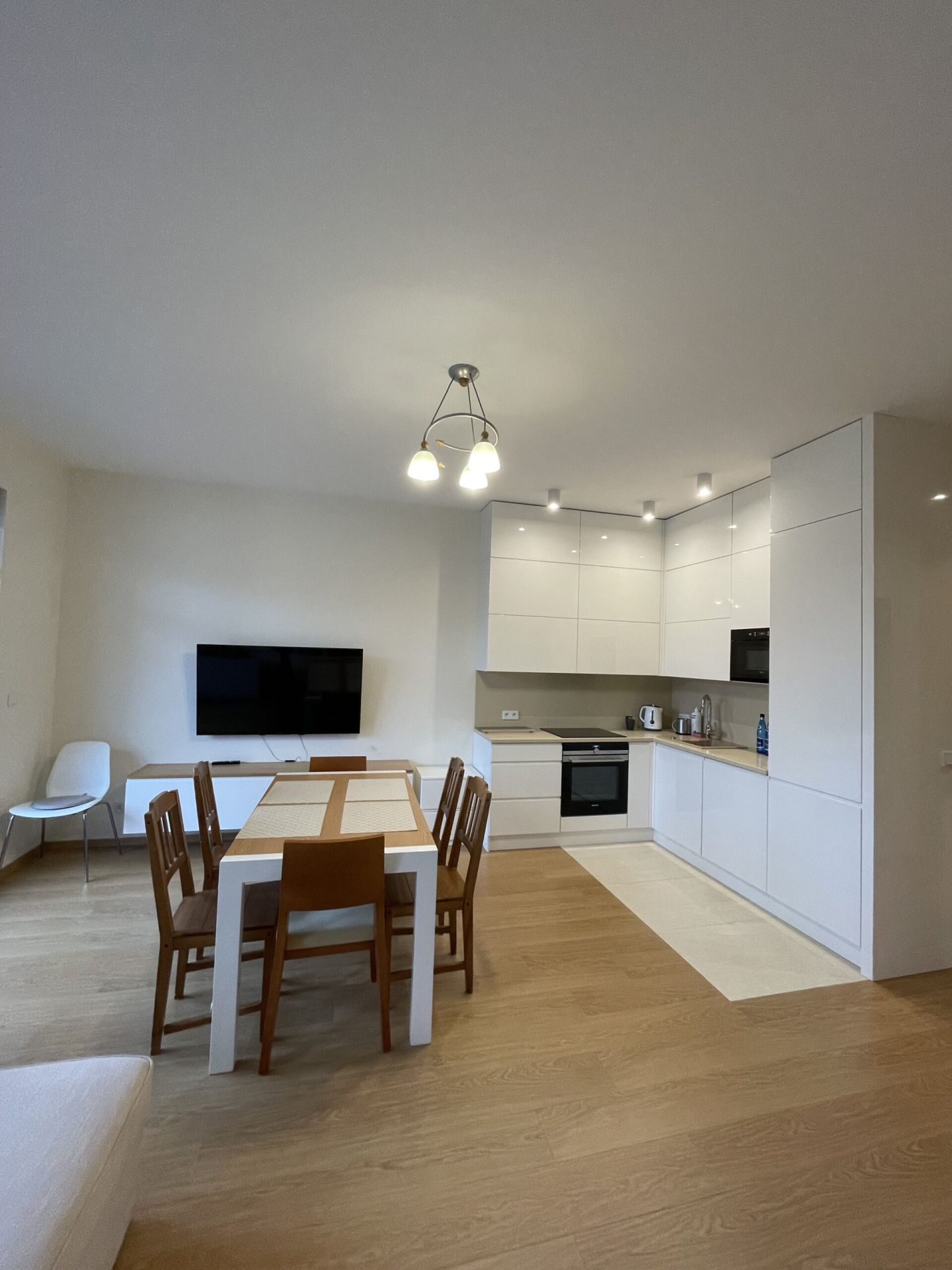 Apartament umieszczony jest na trzecim piętrze. Składa się z jednej sypialni, łazienki z WC oraz salonu połączonego z aneksem kuchennym, z którego istnieje wyjście na słoneczny taras.