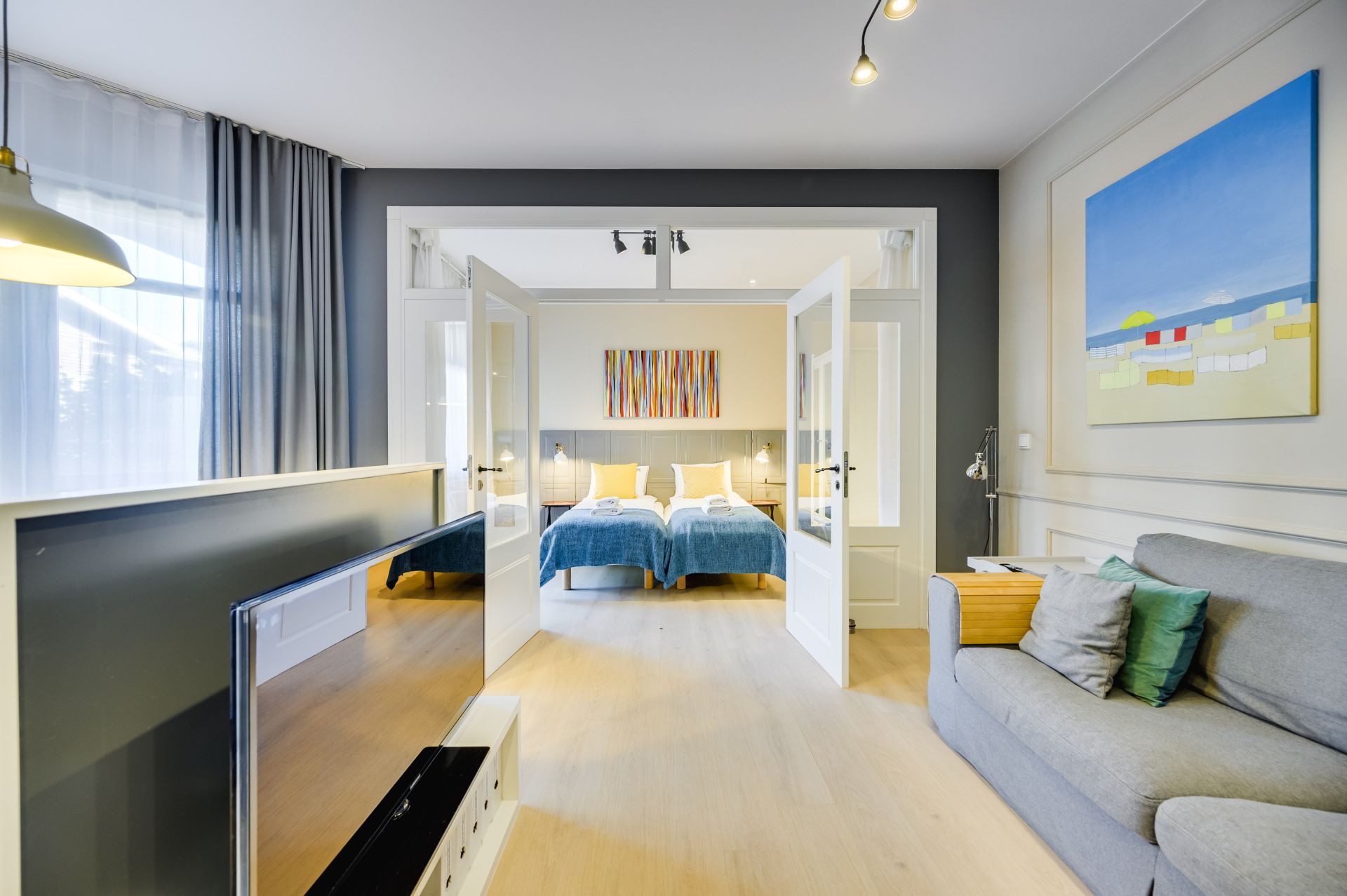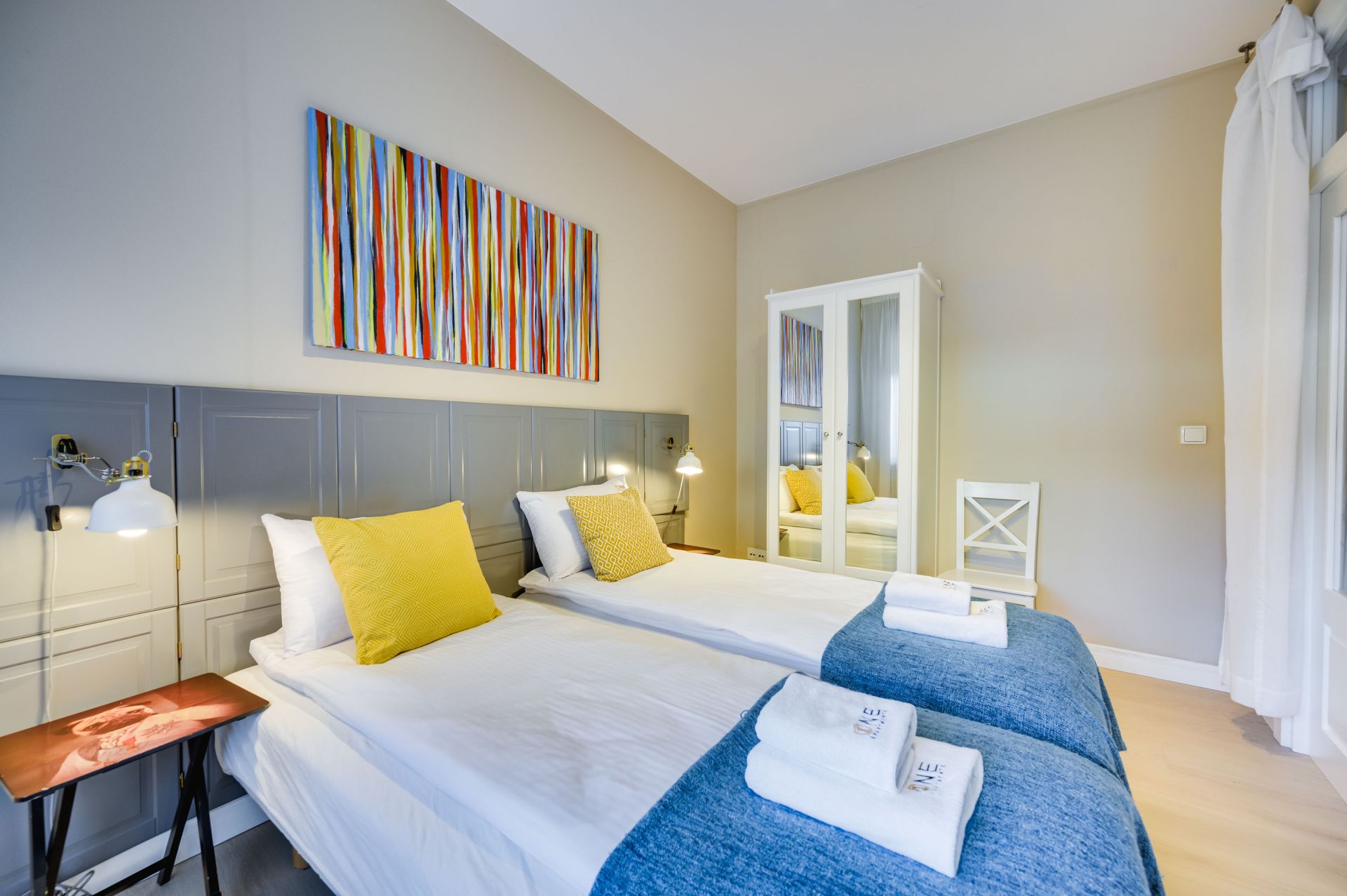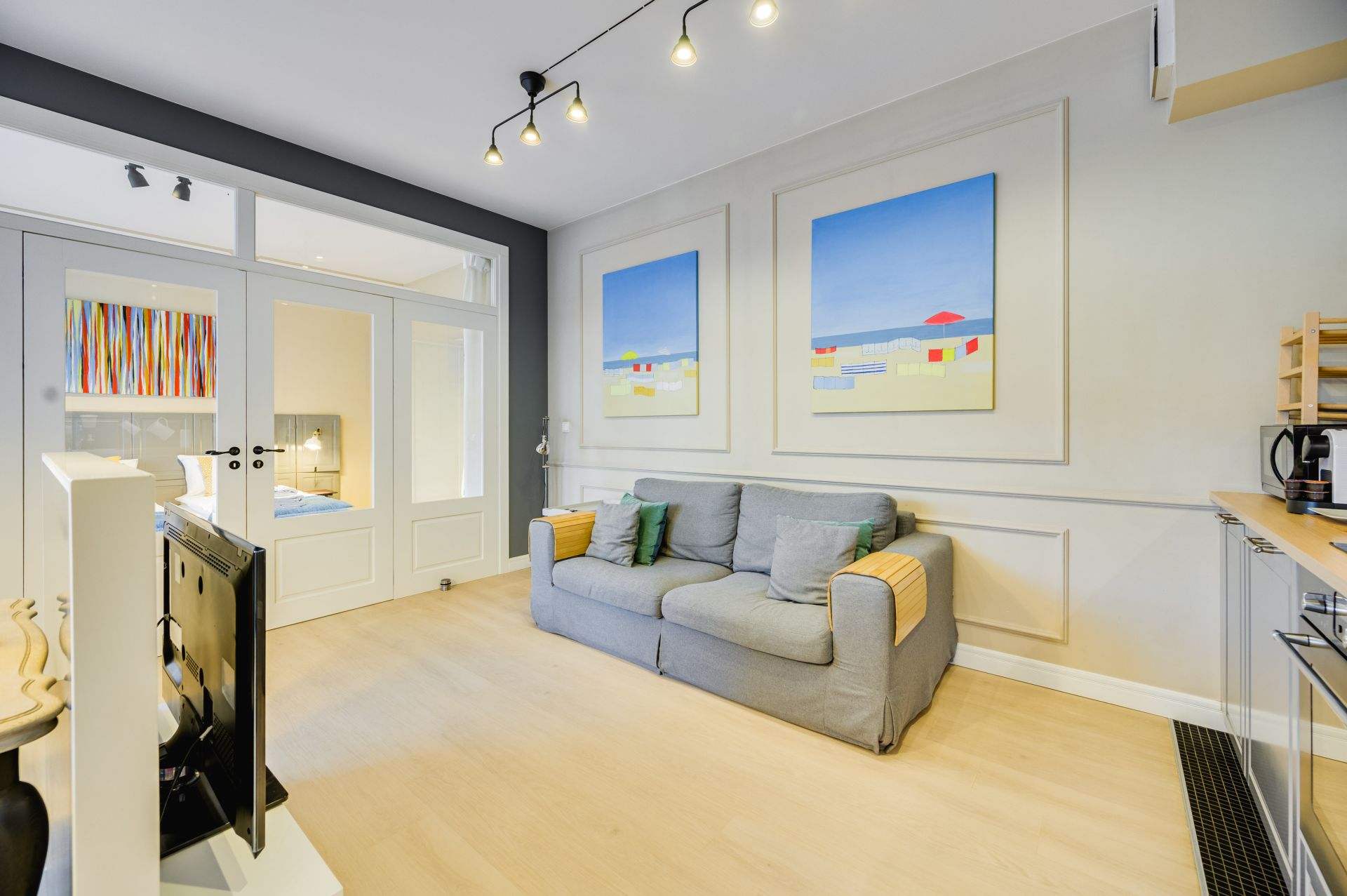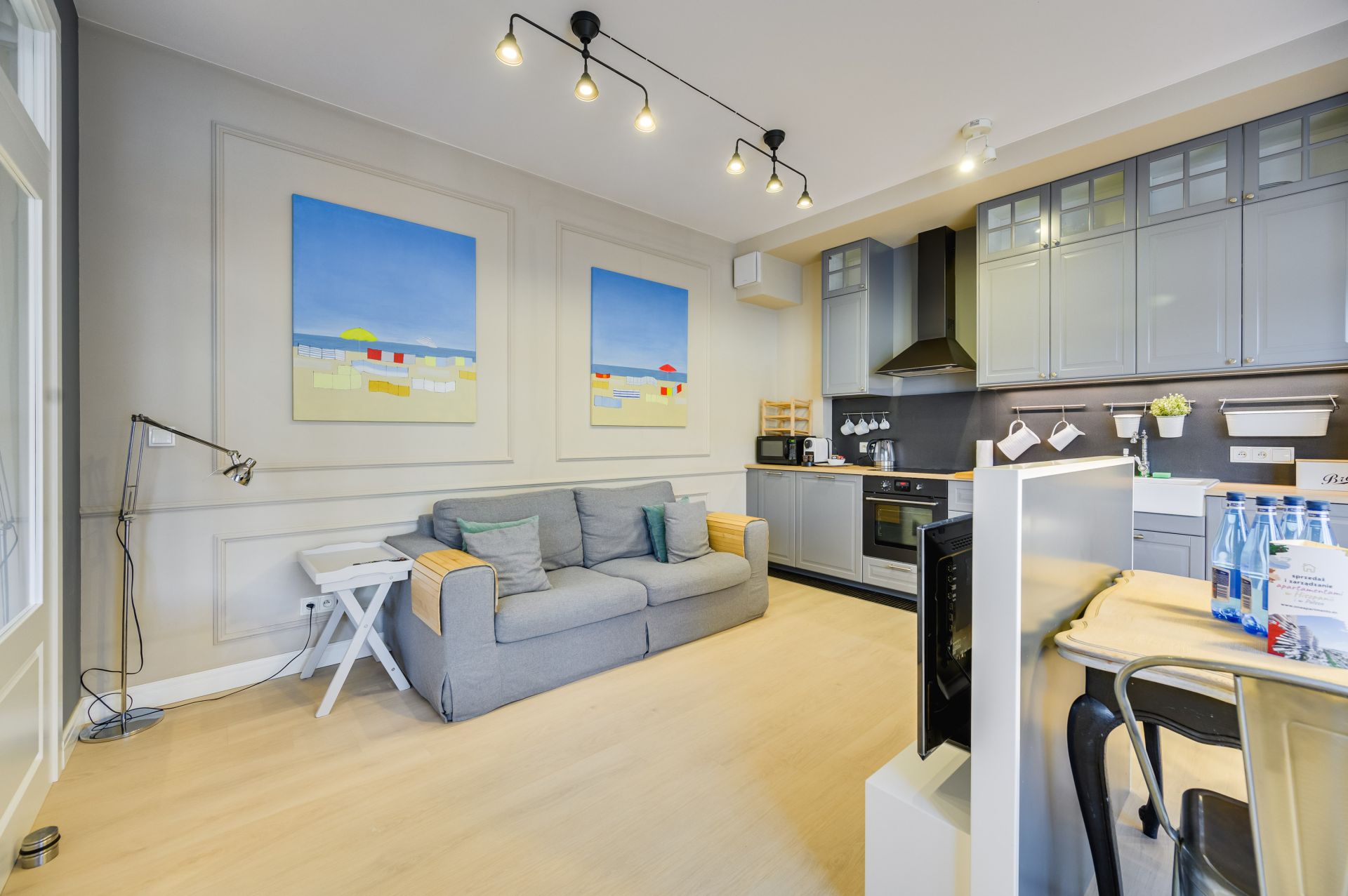 Dosłownie kilka kroków dzieli apartament od pięknej piaszczystej plaży. W pobliżu znajduje się również wiele ścieżek rowerowych oraz parków. Miejsce to jest świetnie skomunikowane z pozostałymi dzielnicami Gdańska oraz Sopotem. W promieniu kilkuset metrów znajduje się wiele urokliwych kawiarni i restauracji. Apartament oddalony jest od serca Sopotu o 3,5 km. Odległość portu lotniczego im. Lech Wałęsa to 10 km. Dworzec PKP- Gdańsk Oliwa 3 km.
