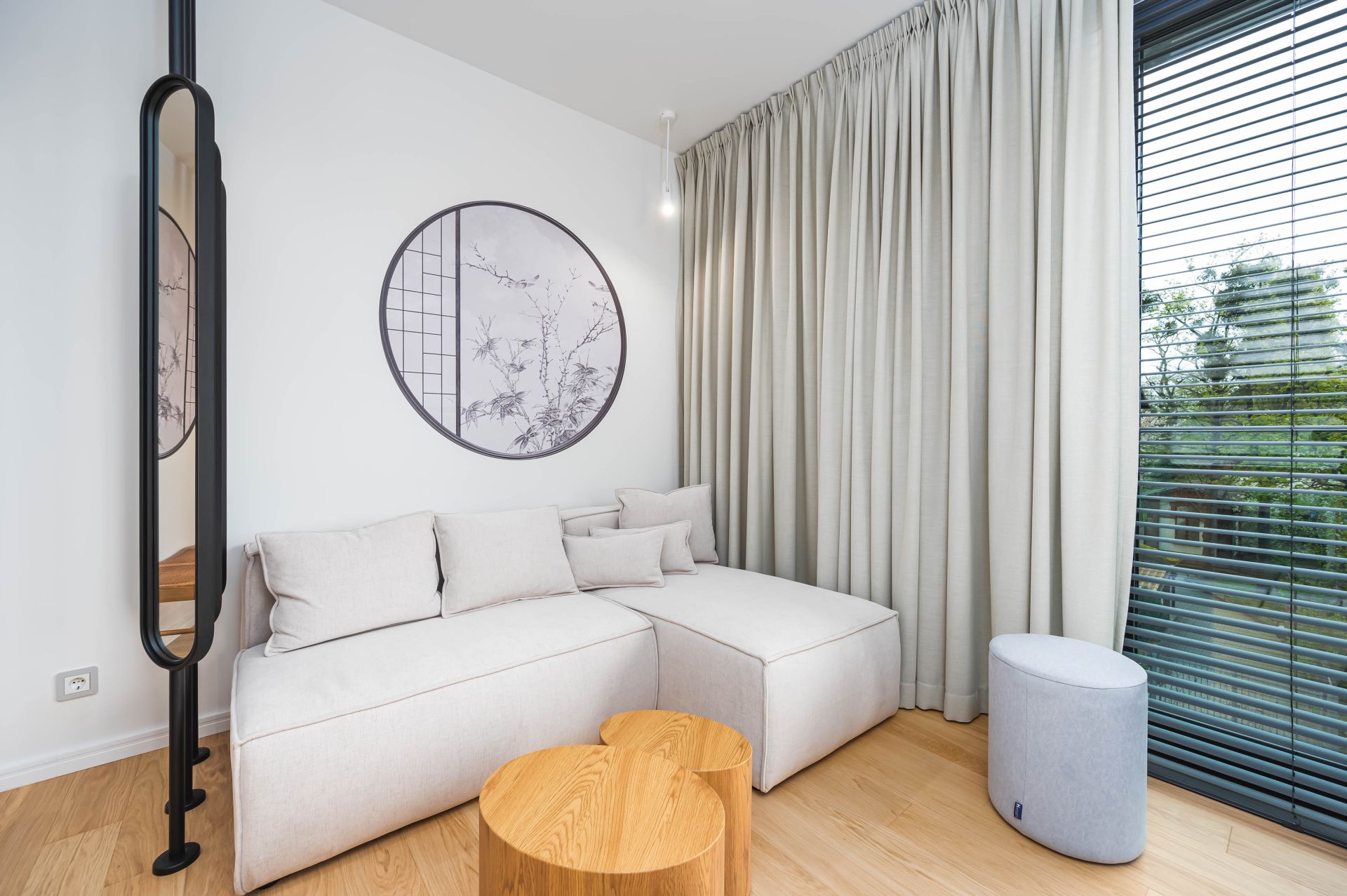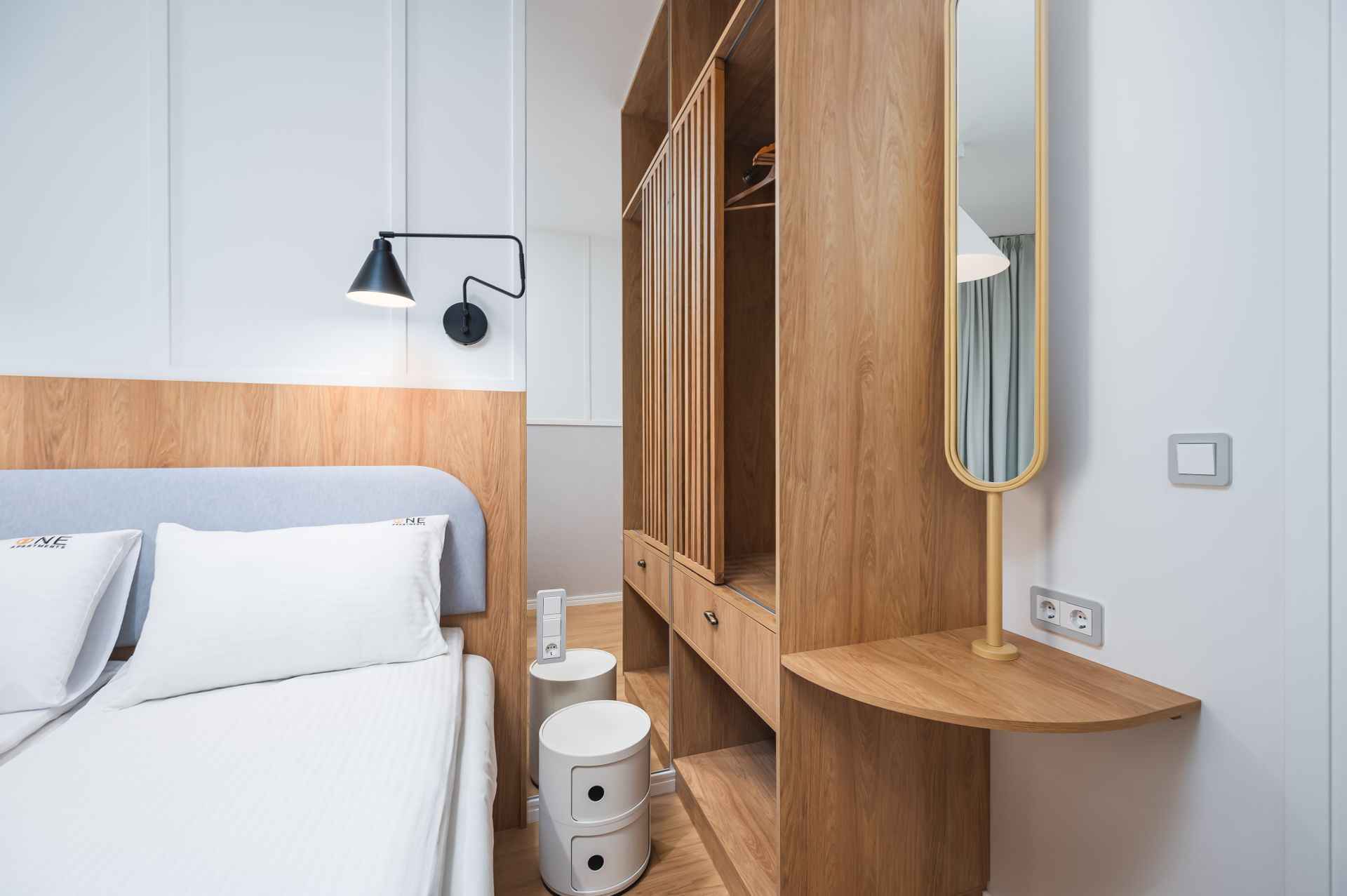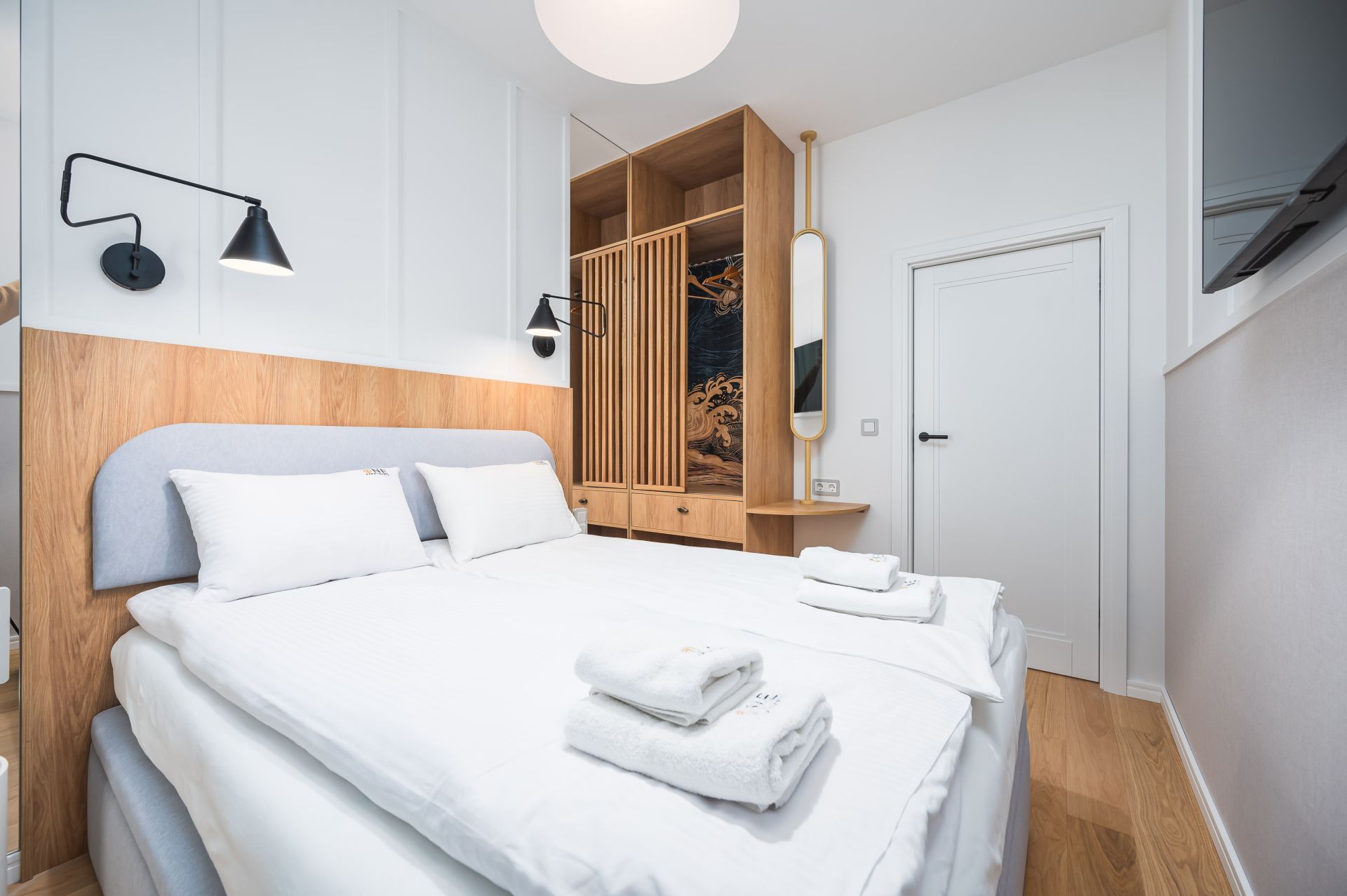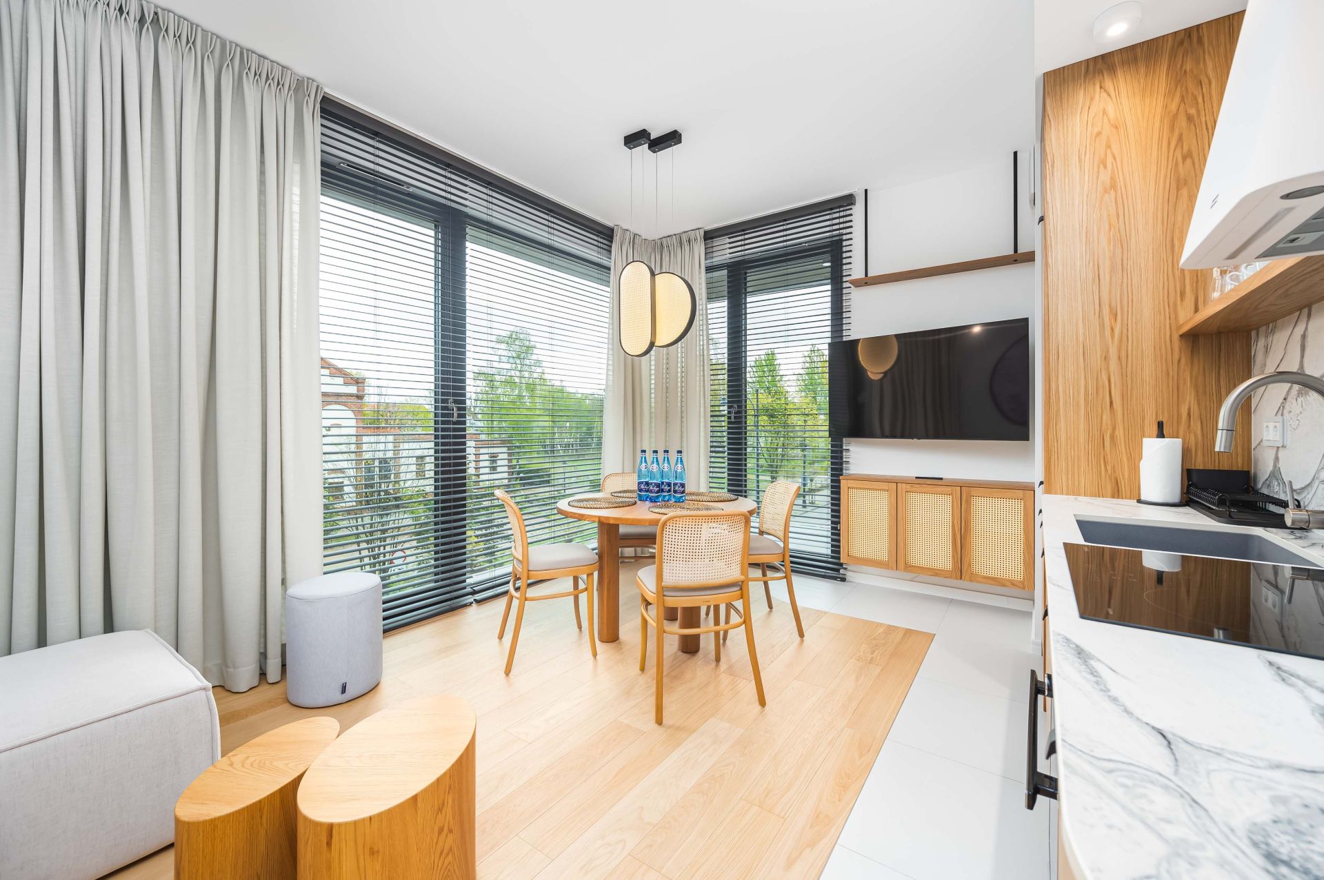 Woodside to apartament 4 osobowy o powierzchni 39m2, znajdujący się na 2 piętrze w budynku z windą. Składa się z sypialni z podwójnym łóżkiem, salonu połączonego z kuchnią, łazienki z toaletą oraz 2 balkonów. W salonie umieszczona jest rozkładana kanapa. W obiekcie jest całkowity zakaz przebywania ze zwierzętami. Do apartamentu przypisane jest miejsce parkingowe w hali garażowej.